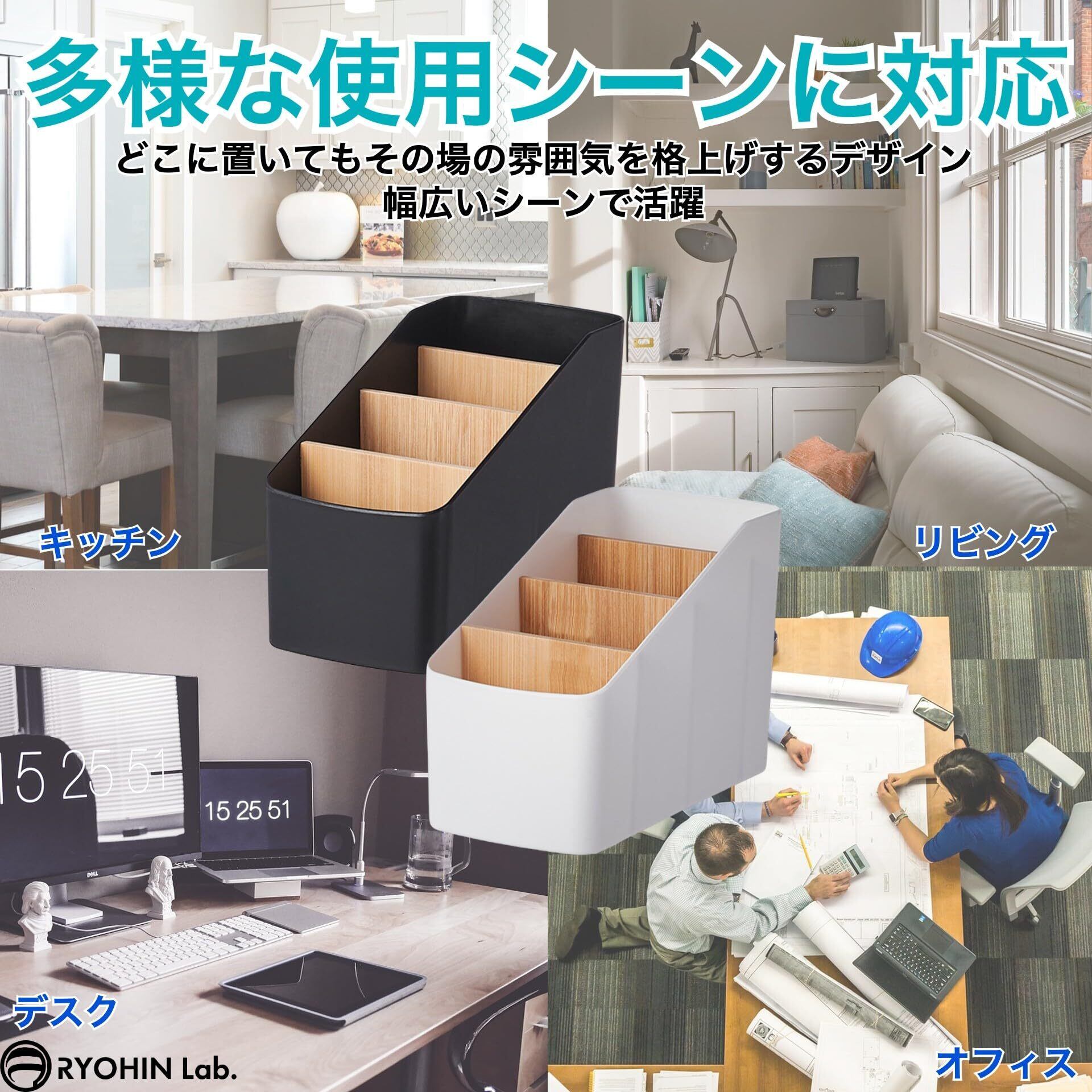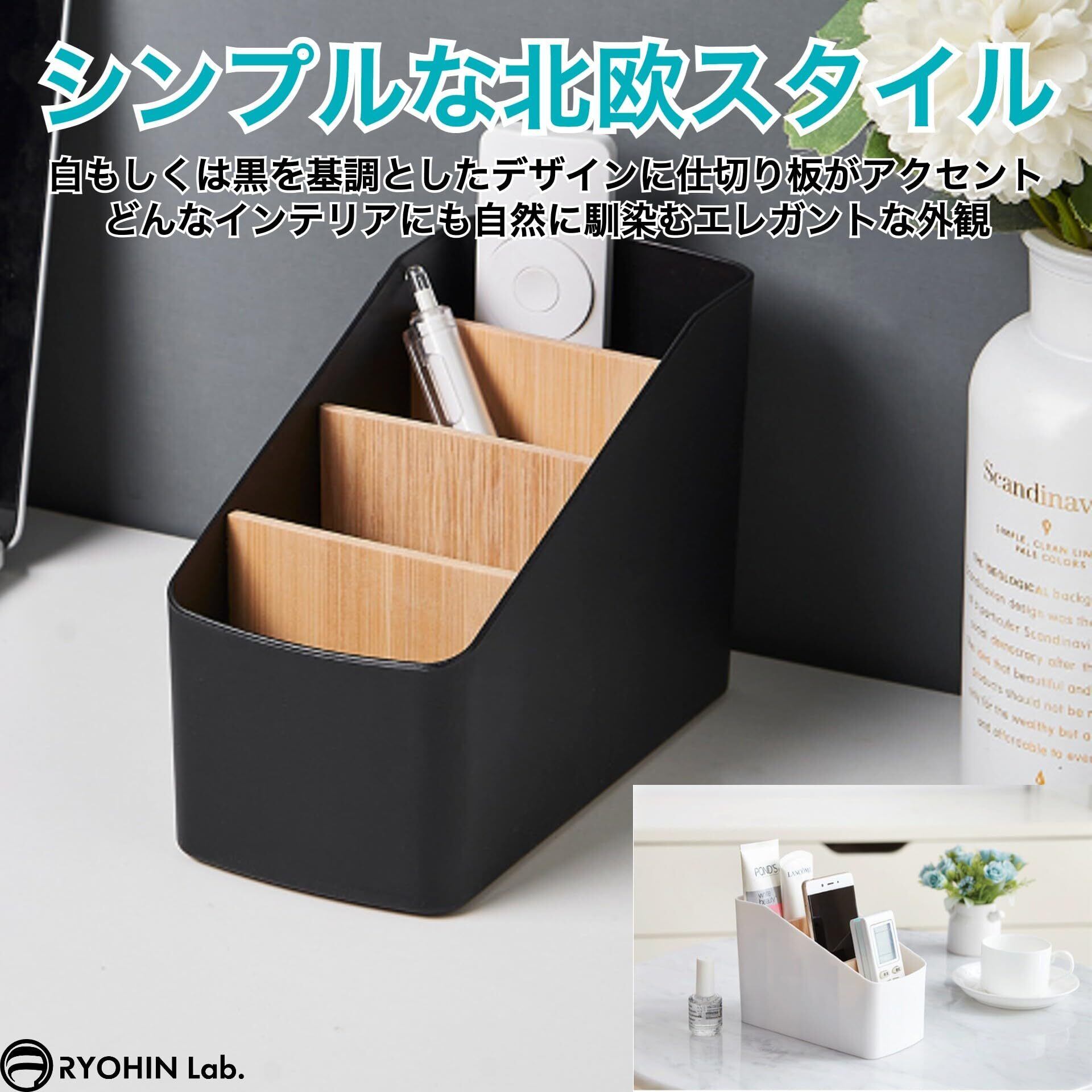 【調整可能な仕切りで自由な収納】4つの収納スペースを持つリモコンラックは、取り外し可能な仕切り板により、収納物に応じてスペースをカスタマイズできます。リモコンだけでなく、文房具やメガネなど様々なアイテムを整理できます。