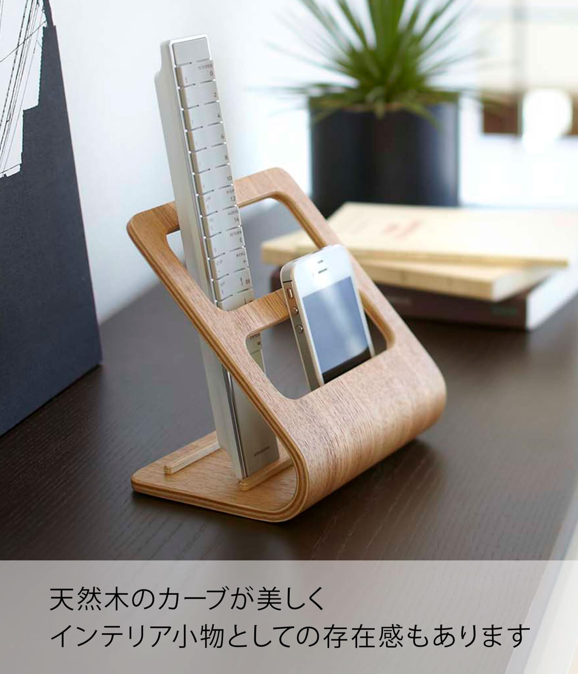 ●サイズ:15×12×高さ15.5cm●商品重量:150g●素材・材質本体/天然木積層合板(ラッカー塗装)上品な木目のカーブが美しい上質なリモコンラック!リモコンはもちろん、手前には携帯電話もしっかりと入る設計になっています。