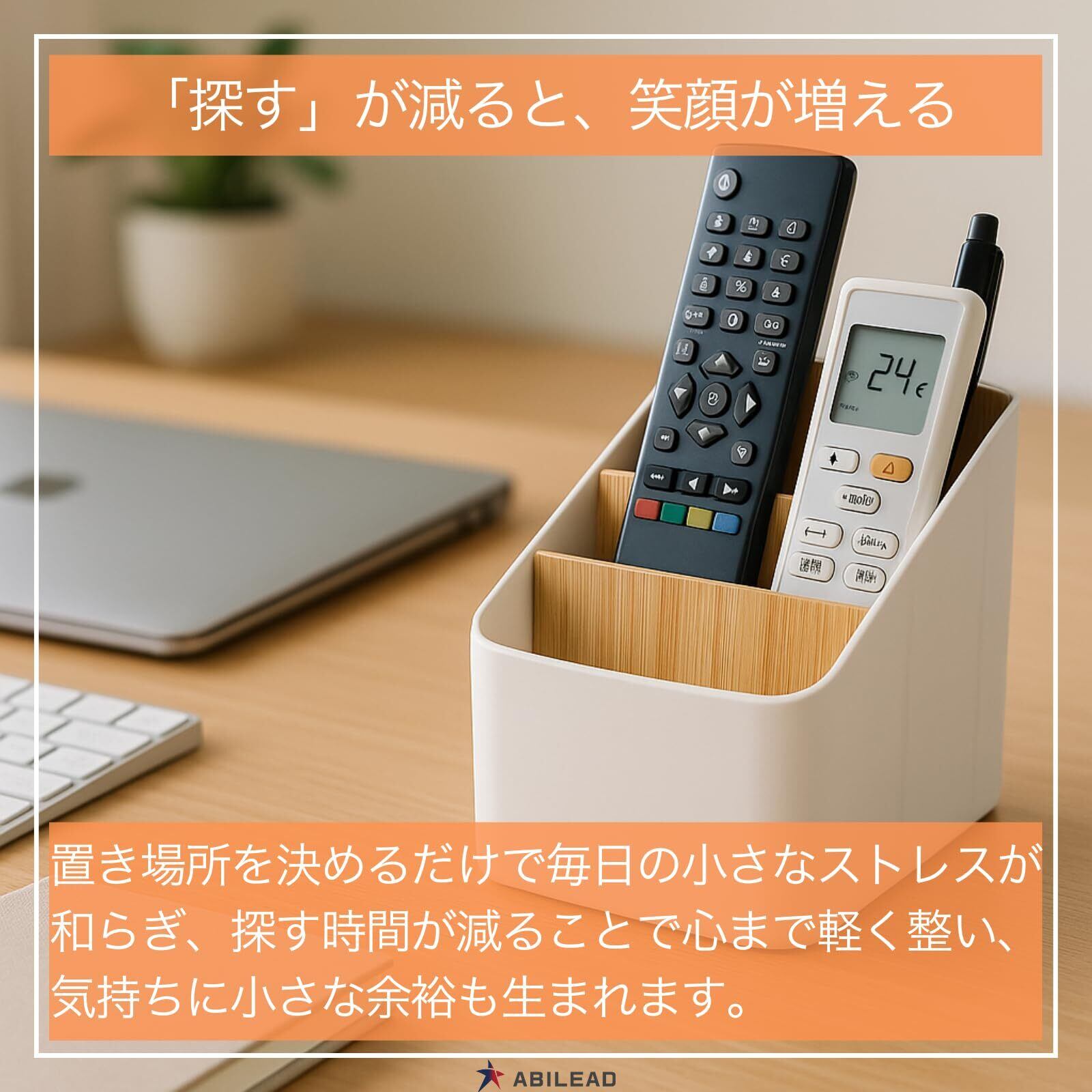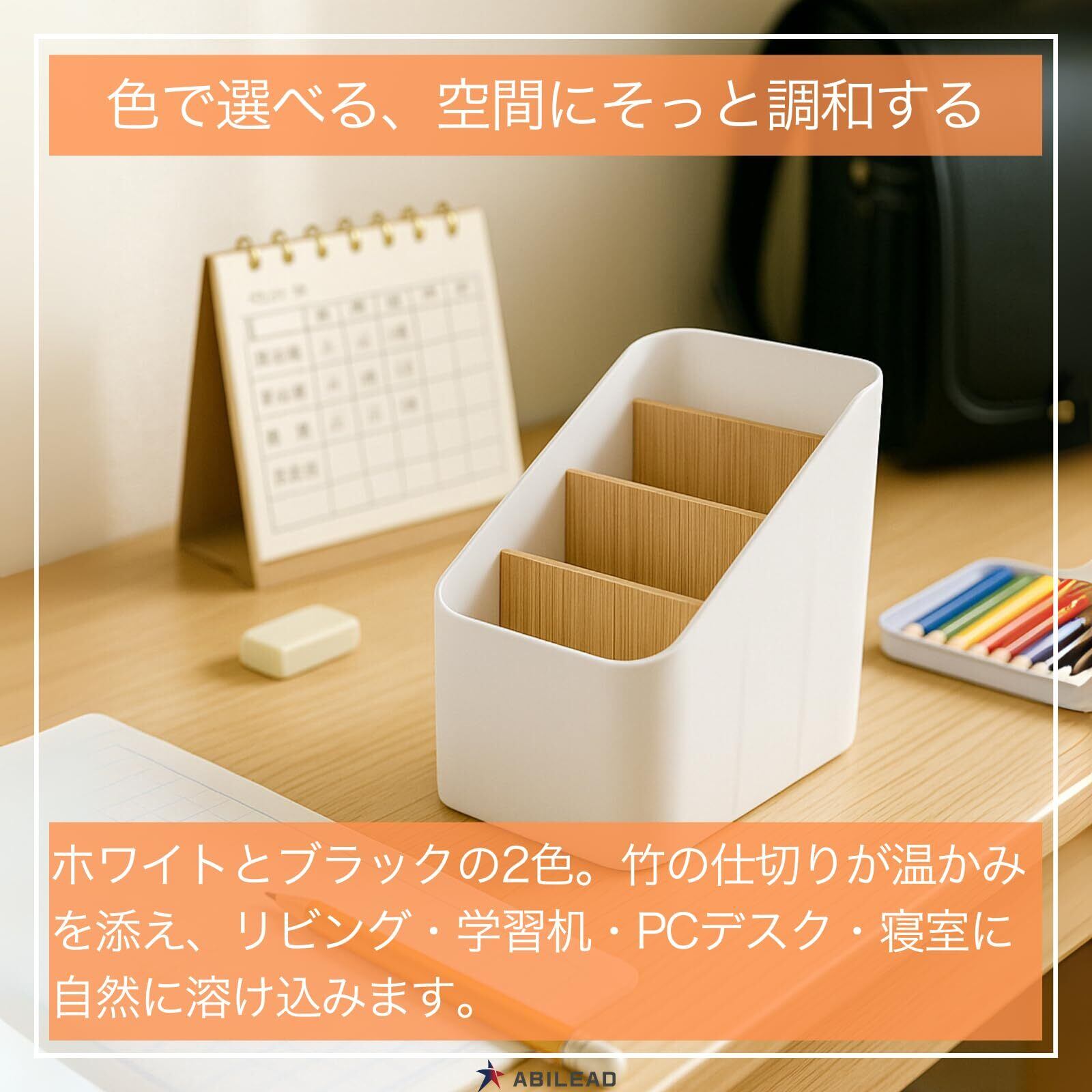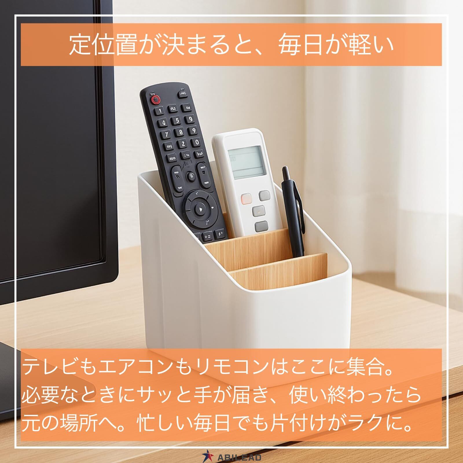 【どの部屋にも調和します】おしゃれな白と黒×竹のコントラストが北欧テイストの空間にしっくり。リビングのテーブル、在宅デスク、子ども部屋、ベッドサイドまで、リモコン置きやリモコン入れとして「見える場所」に置いても整って見えます。
