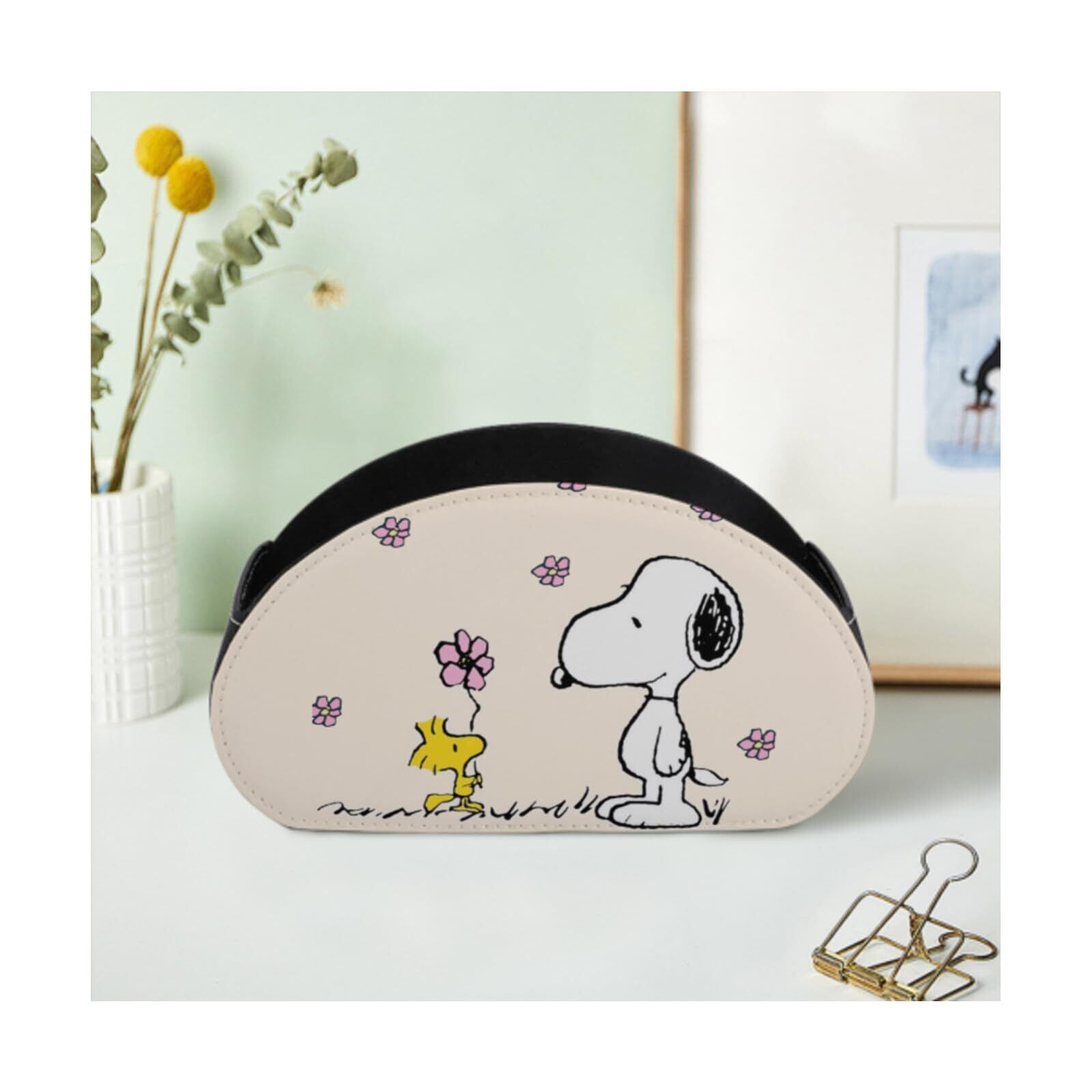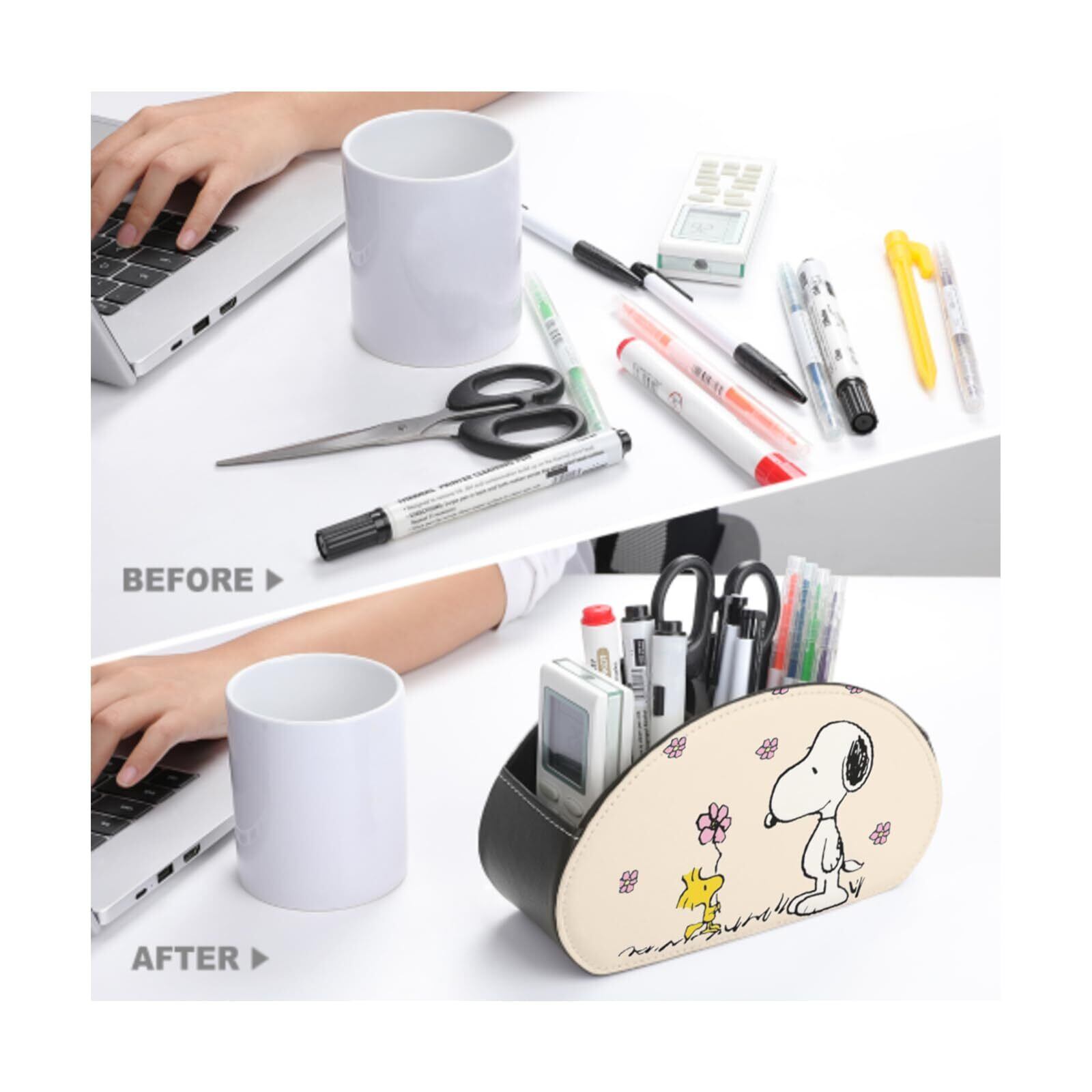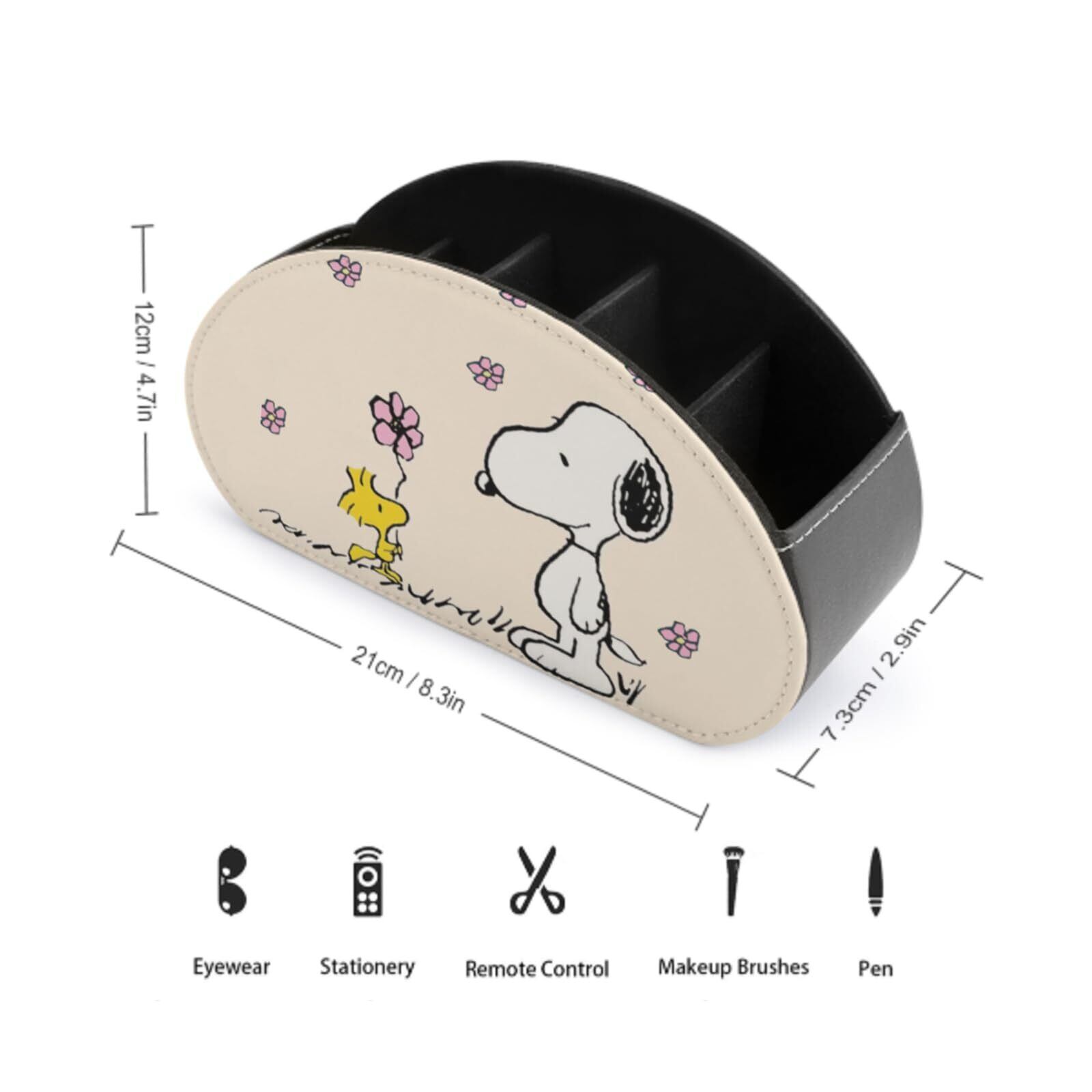 スヌーピー リモコンラック PUレザー製 卓上小物収納ケース 5格仕切り 多機能 テーブル リモコン立て 眼鏡スタンド 小物入れ コスメ 文房具 収納スタンド リモコンスタンド おしゃれ 防水 自宅 オフィス (ホワイト)
