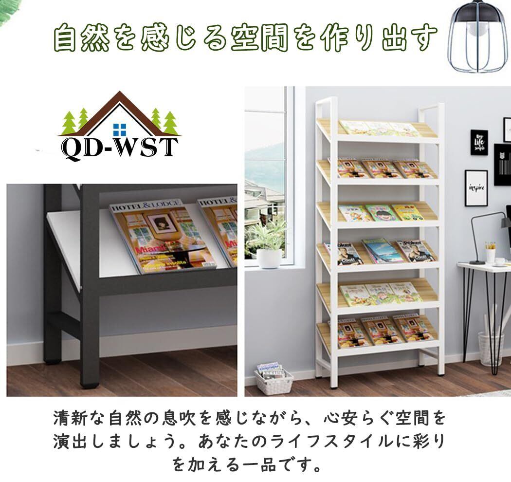 【シンプルでおしゃれなデザイン】このマガジンラックのデザインはシンプルであり、鉄製のフレームと木製の棚板が室内の雰囲気と調和していて、オフィスではカタログの展示などディスプレイラックとして最適です。