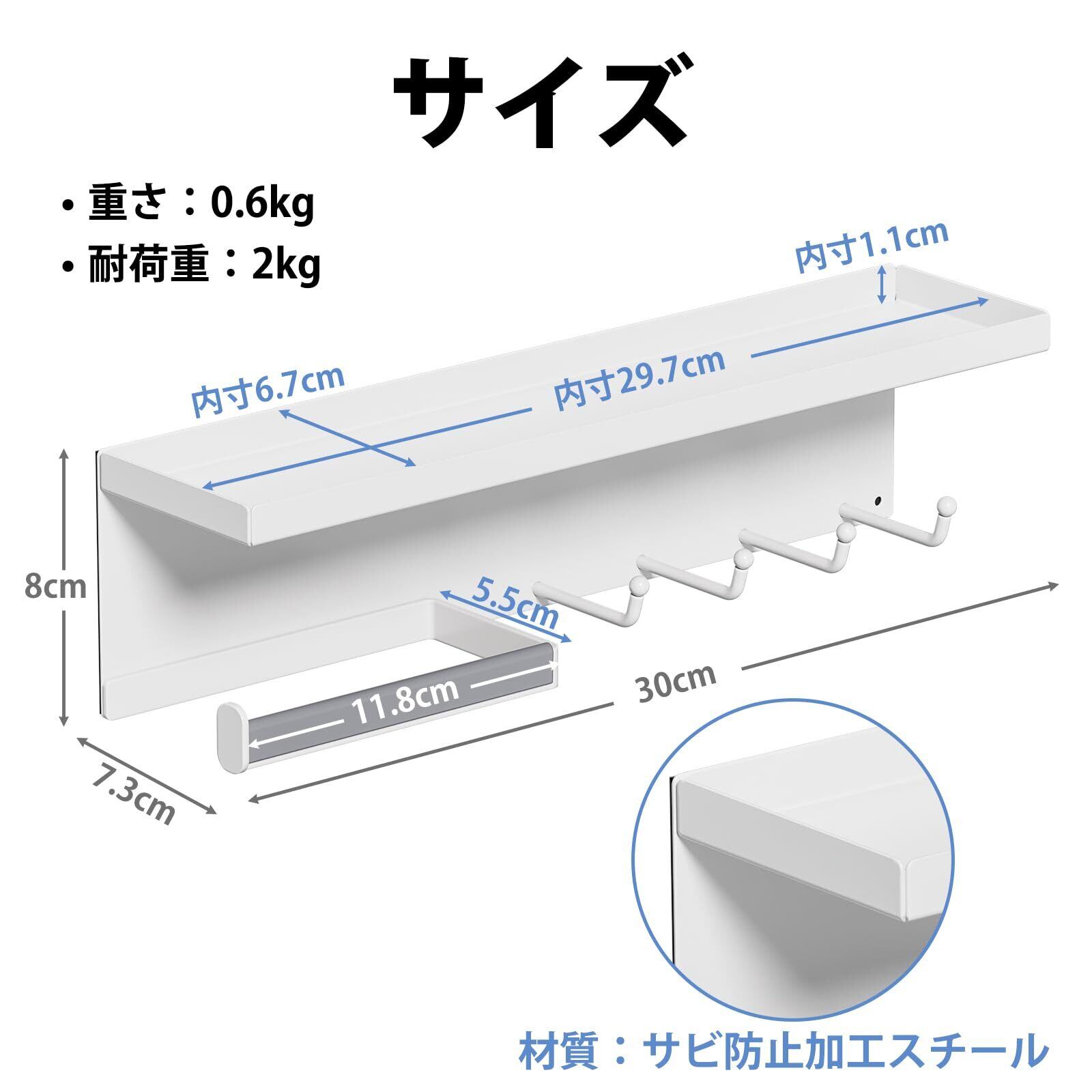 【すっきり見えるモダン玄関に】インテリアに溶け込むホワイトカラーで、どんなインテリアにもマッチします。サイズ幅30cm×奥行き7.3cm×高さ8cmコンパクトなサイズで、玄関に貼り付ければ場所を取りません。