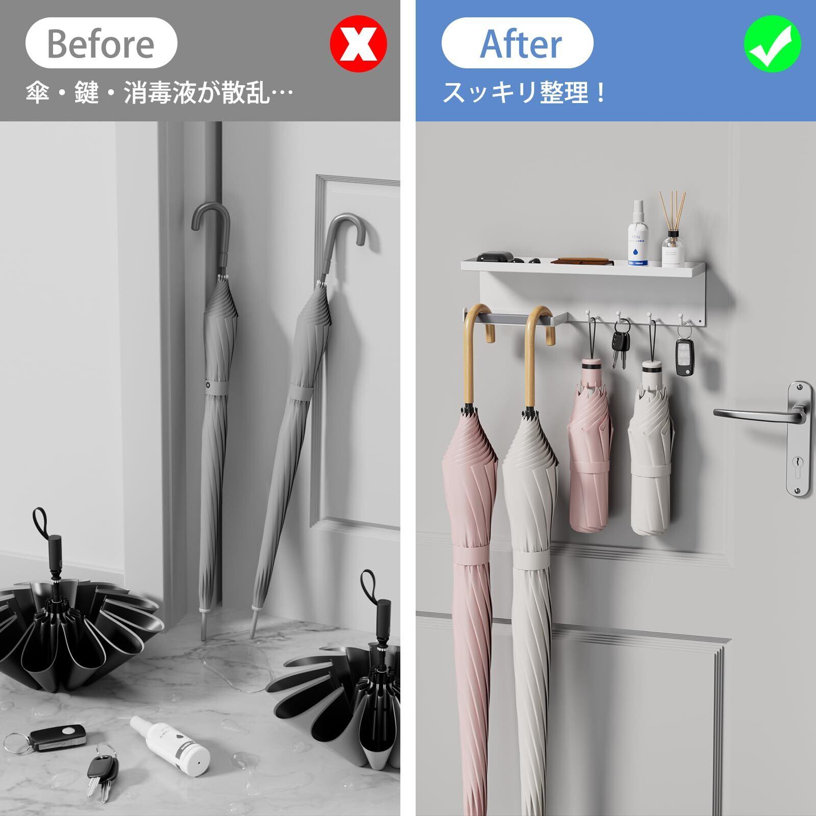 マグネット式玄関傘立て 穴あけ不要 滑り止め付き 折り畳み傘/長傘対応 鍵置き 小物収納 コンパクト 省スペース 簡単設置 ホワイト