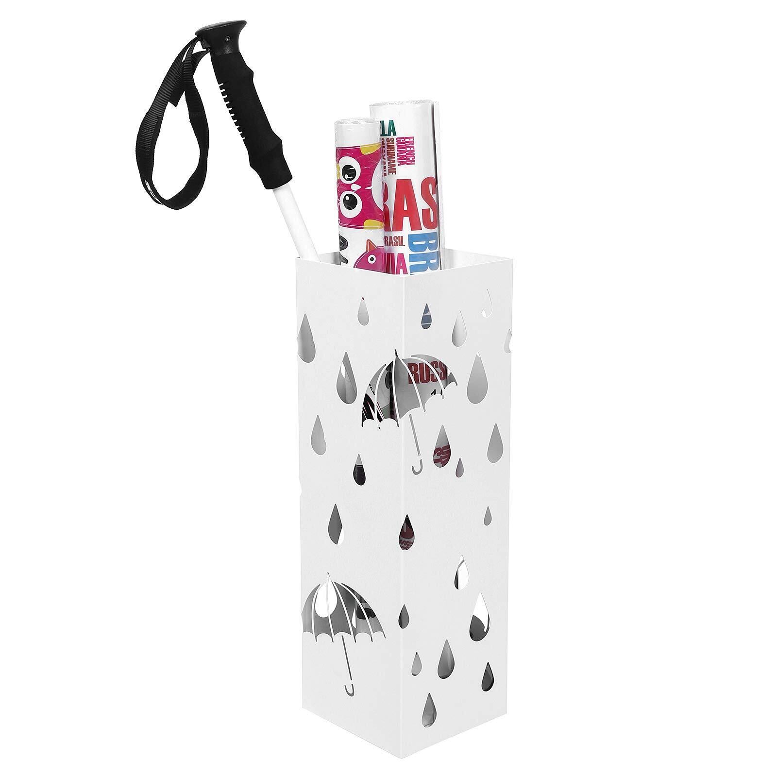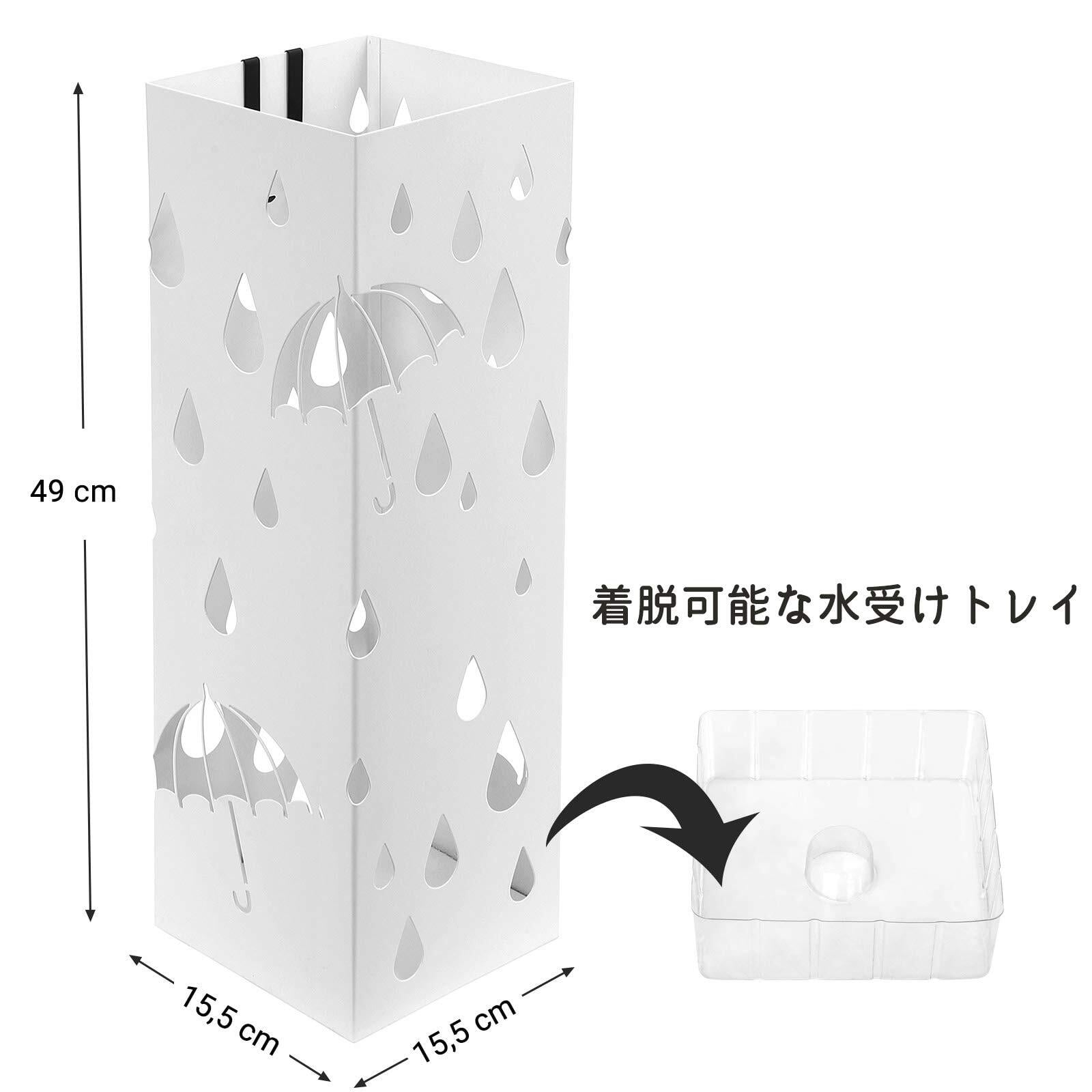 SONGMICS 傘立て 傘たて おしゃれ 水受けトレイ付き アンブレラスタンド 折り畳み傘兼用 玄関収納 傘入れ ホワイト LUC49WV1