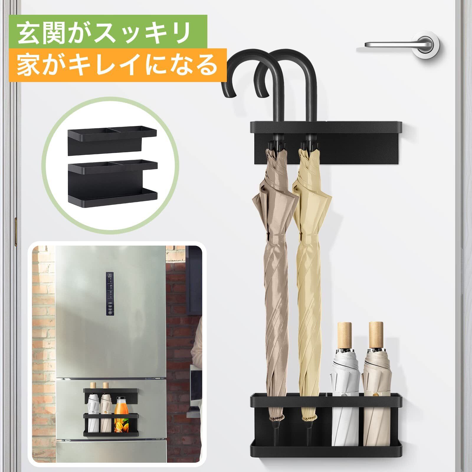 【新春セール】マグネット傘立て ブラック スリム おしゃれ 水受けトレイ付き 多機能傘収納 玄関ドア壁掛け コンパクト 傘立て 玄関扉収納 (ブラック)