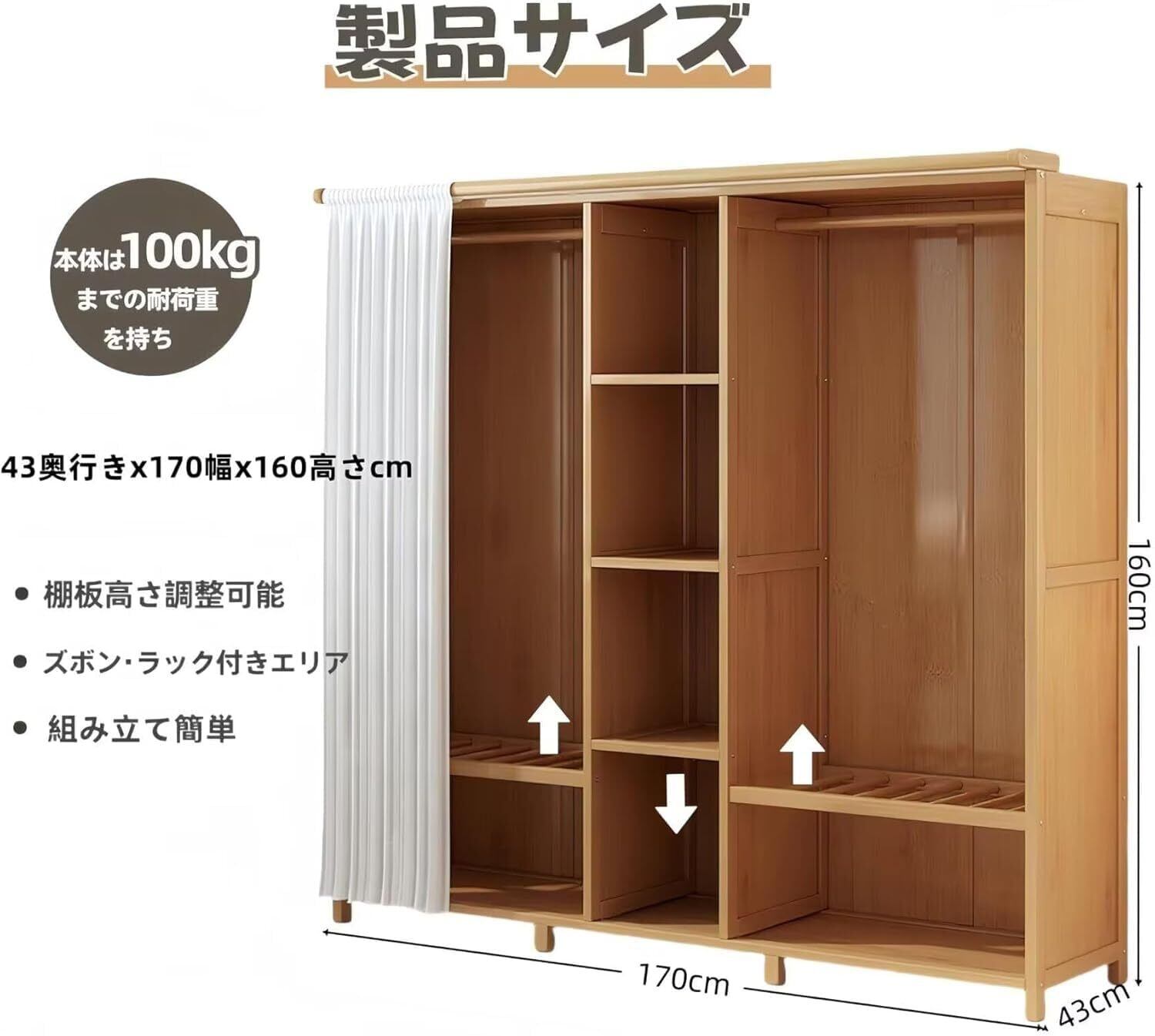 サイズ 170x43x160.6cm