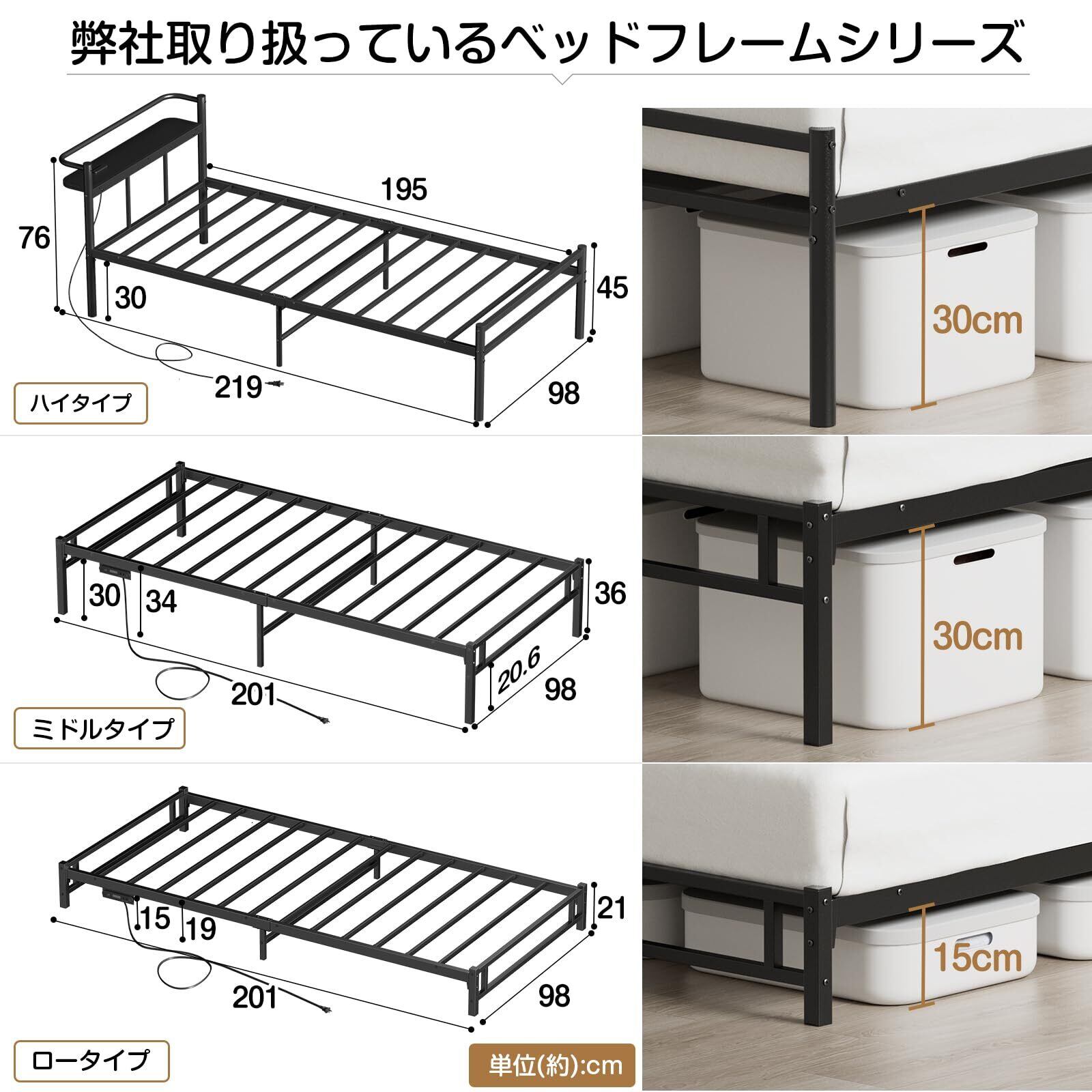 特徴 LEDライト付き・コンセント付き・床下収納高さ15cm・ローベッドフレーム