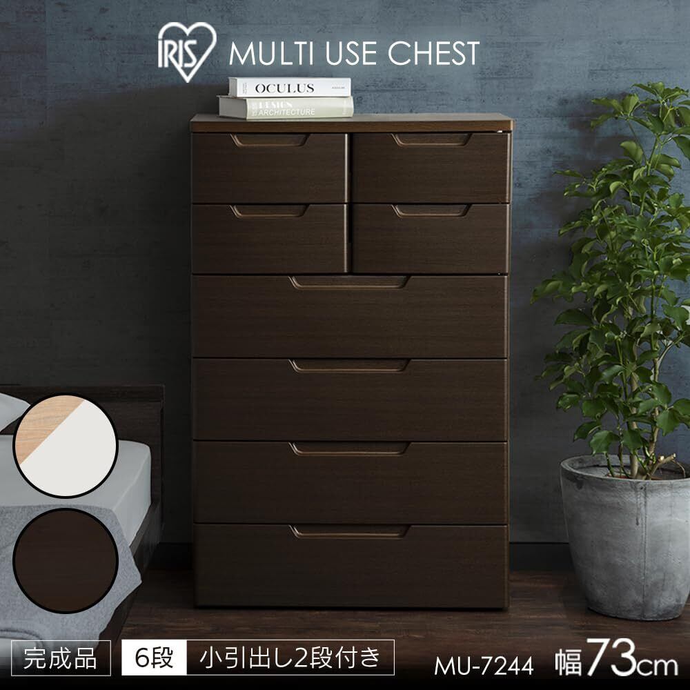 アイリスオーヤマ チェスト 6段 届いてすぐ使える完成品 日本製 幅72×奥行40.5×高さ112cm ホワイト/ナチュラル 白 プラスチック MU-7244 組立不要