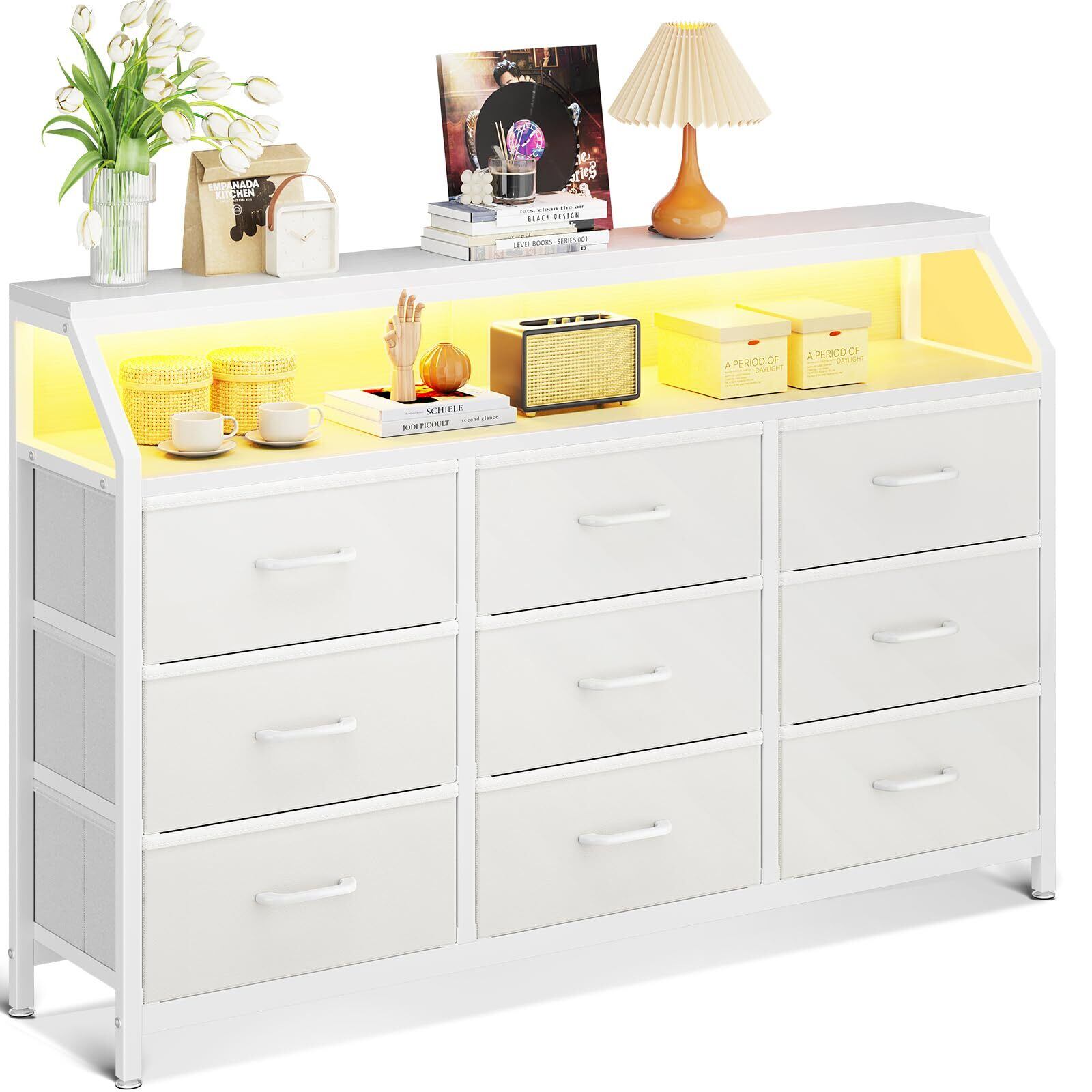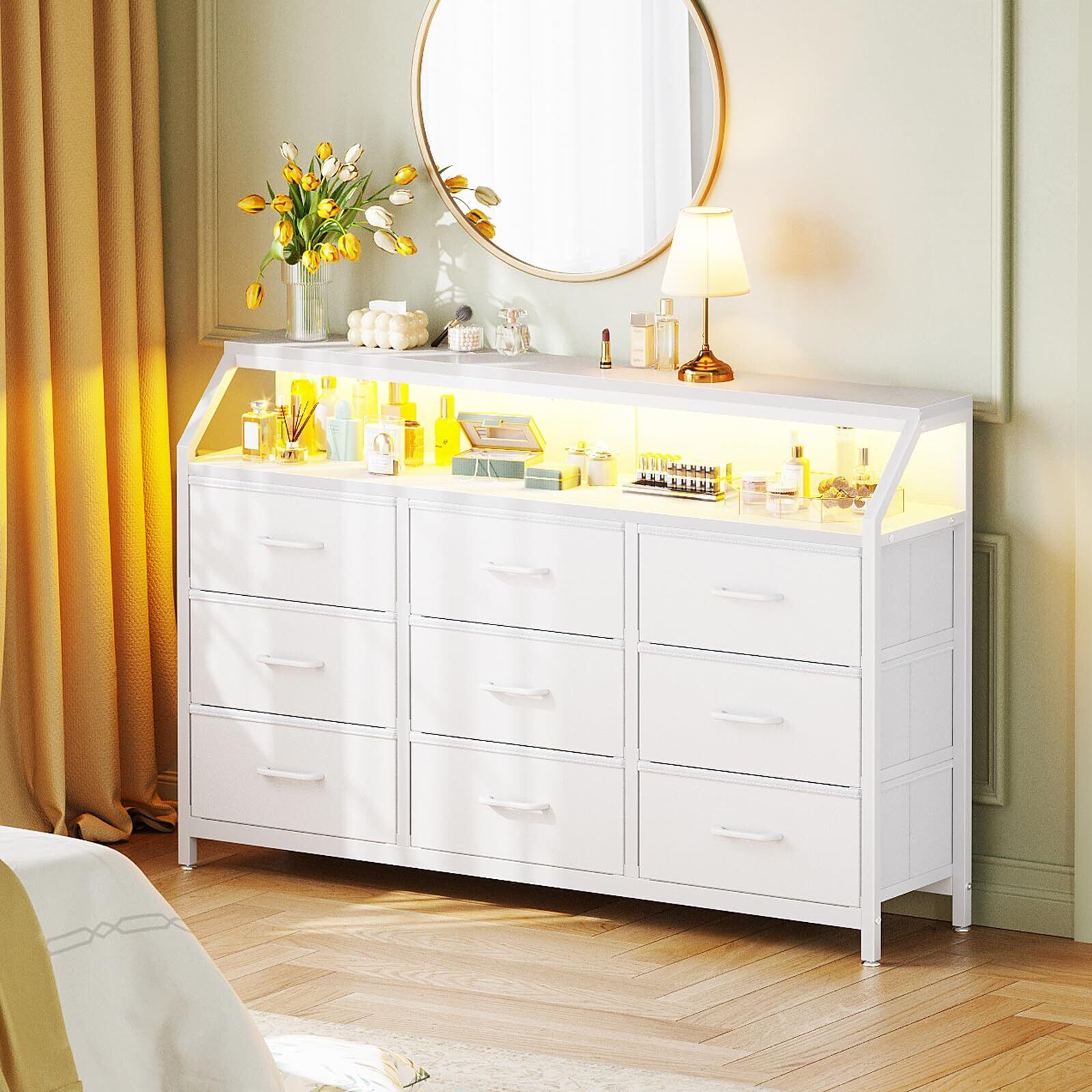 AODK タンス チェスト 衣裝ケース 収納ケース 衣装棚 洋服収納 led付き 引き出し9杯付き 脱衣所 衣類チェスト 洋服タンス 箪笥 たんす 木製天板付き 和風 リビング 安定感 大容量(ホワイト, 幅137×奥行30×高さ95cm)