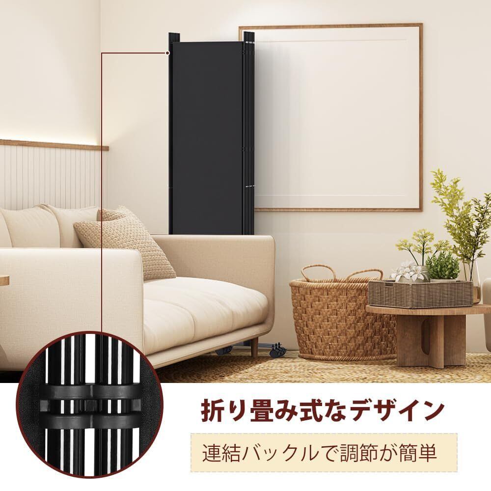 パーテーション 6連タイプ間仕切り 高さ178cm 幅302cm キャスターやカバーストリップ付き 折り畳み式 パーティション 衝立スクリーン 区切り 目隠し 省スペース オフィス 事務所 リビング (ブラック)