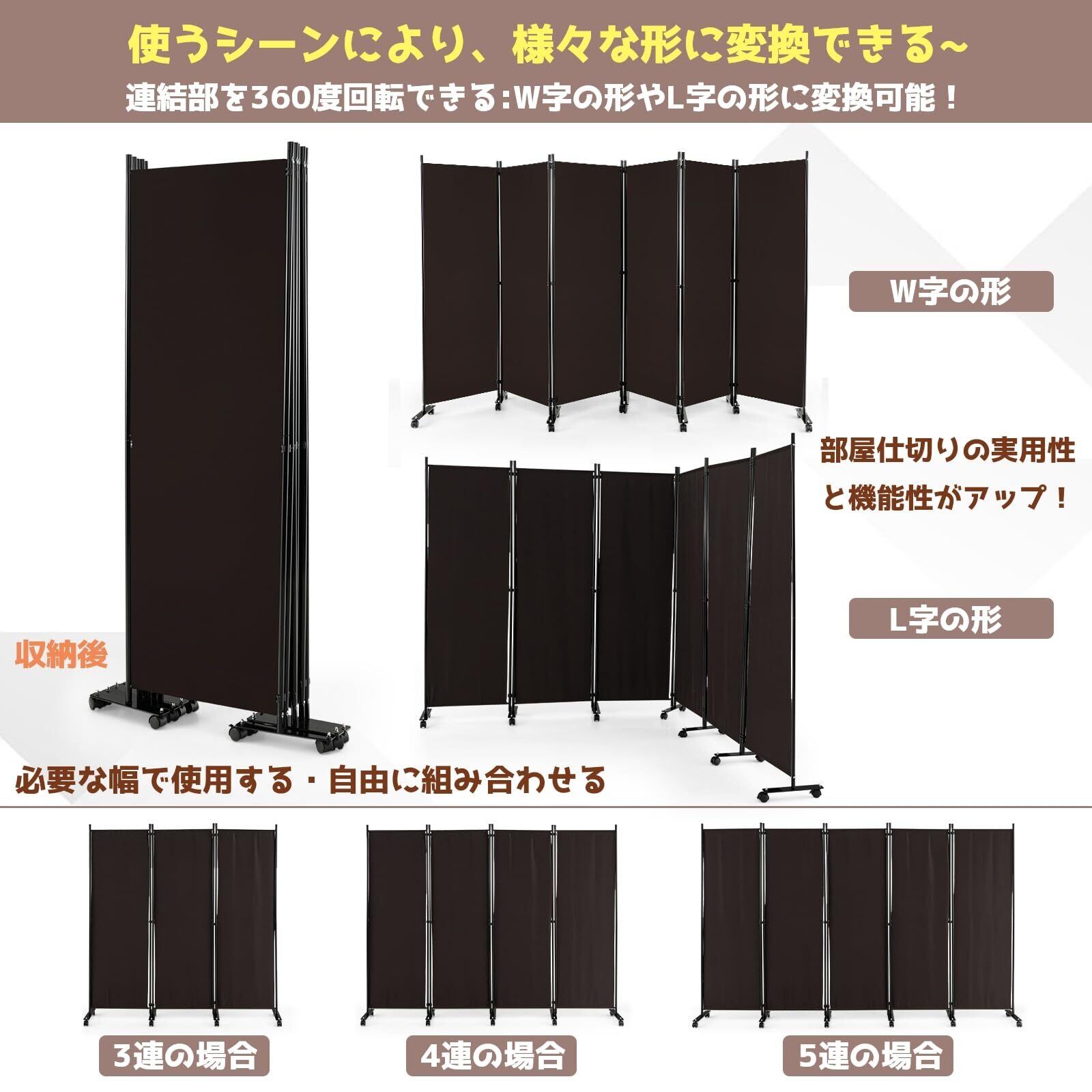 パーテーション 間仕切り 6連 幅334cm 高さ172cm キャスター付き ブラウン 透けない パーティション 目隠し 衝立 屏風 スクリーン 部屋仕切り 事務所 オフィス 会議室 相談式 クリニック 病院 カフェ 家 ホテル 室内