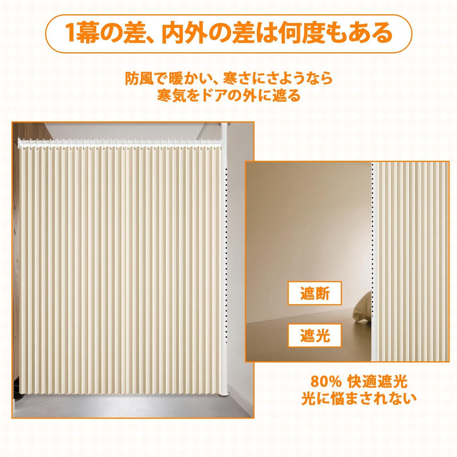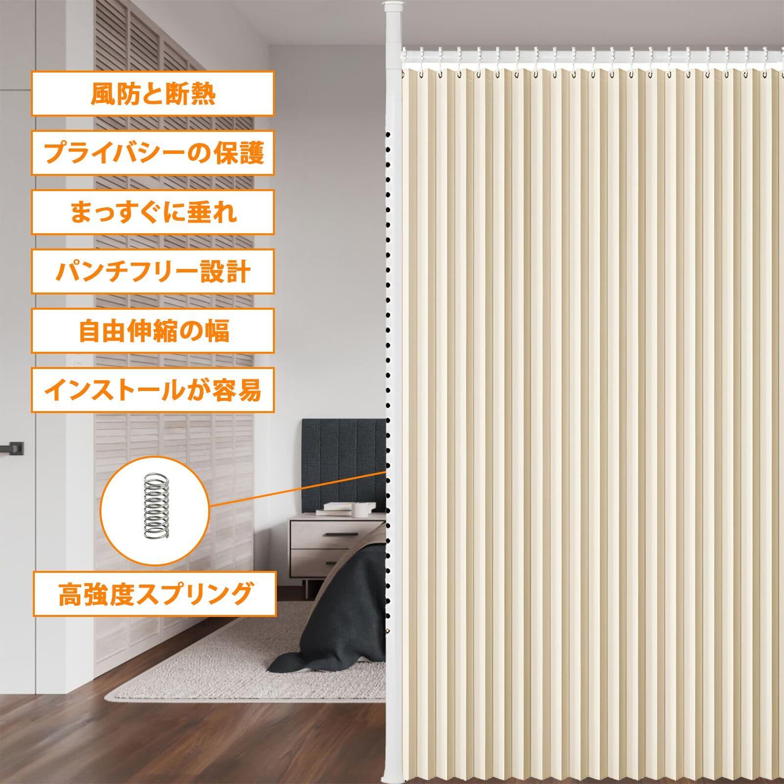 【在庫処分】つっぱり式 間仕切り 伸縮可能 パーテーション 部屋の間仕切り 自立式 カーテンリング付き 幅210-260cm× 高さ210~310cm 折りたたみ式 隠形収納 遮光 プライバシー保護 風除け断熱 設置簡単 壁に傷つけない リビング 寝室 キッチン用 (クリーム色)