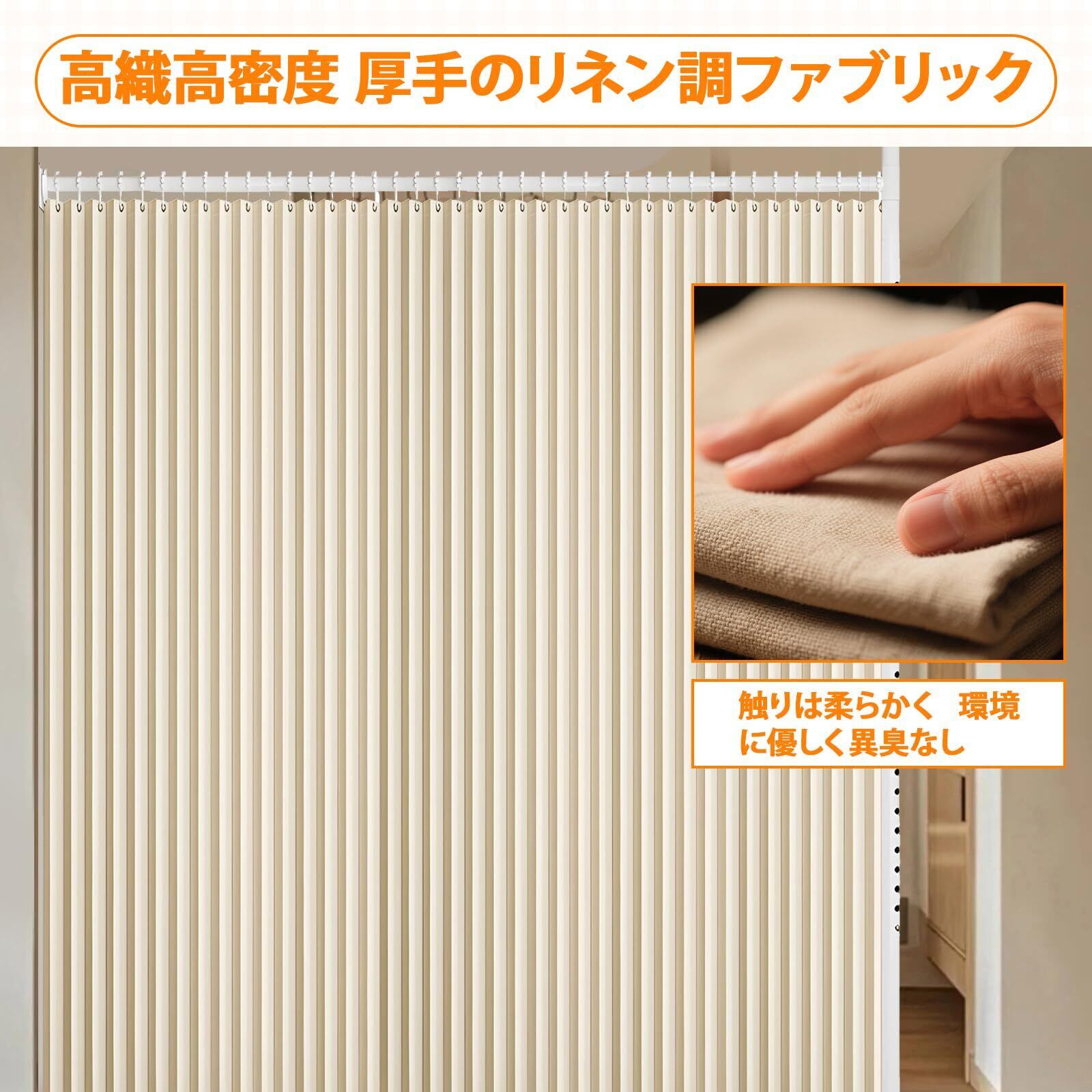 【美しいデザインと使い勝手】クリームホワイトの配色はインテリアに溶け込み、折りたたみ式設計で収納時はほぼ目立たなくなります。ボールベアリングリングによりスライドが円滑で、レザーバンドで束ねることでまとまりのあるデザインになります。布地は垂れ味が良く、折りたたんでも形が崩れにくいです。