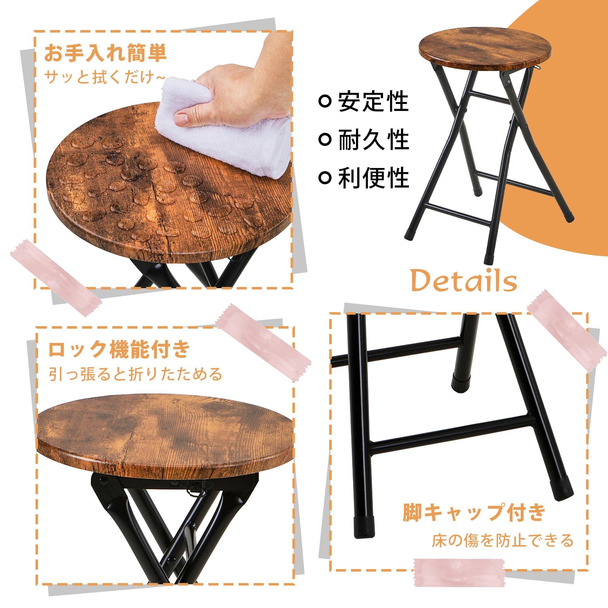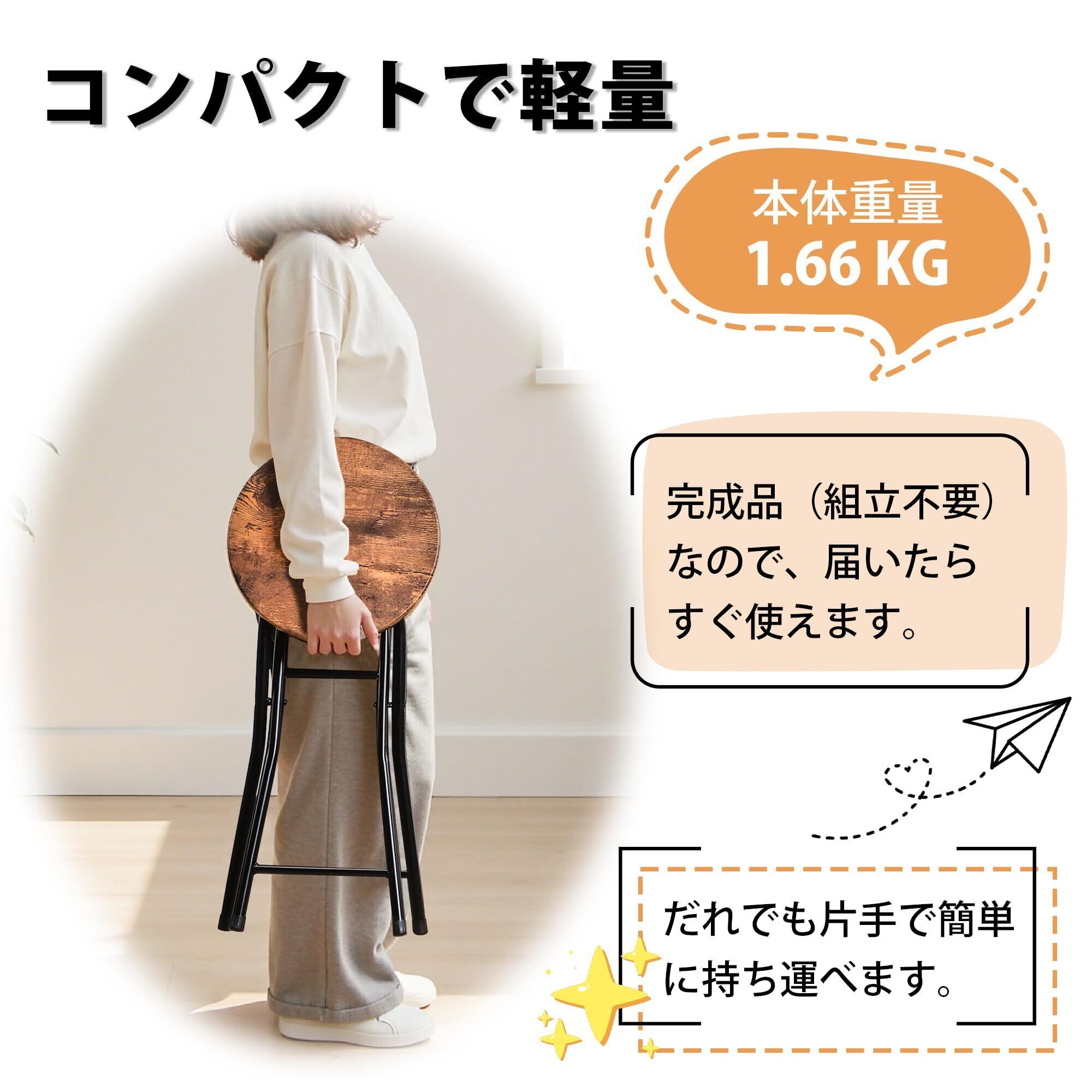 VECELO 折りたたみチェア スツール パイプ椅子 折り畳み 軽量 スリム 持ち運び 完成品 高さ46.5cm 耐荷重100kg 木目 ブラウン