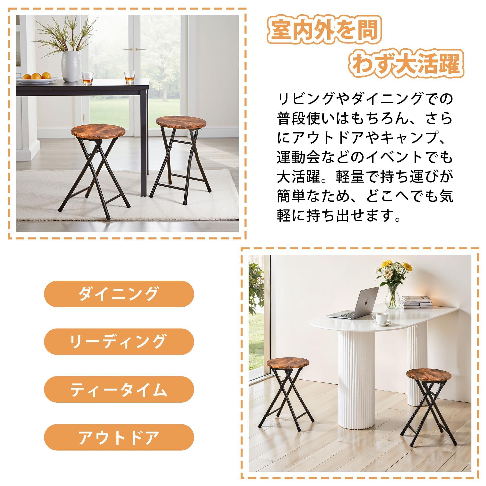 【人気商品】VECELO 折りたたみチェア スツール パイプ椅子 折り畳み 軽量 スリム 持ち運び 完成品 高さ46.5cm 耐荷重100kg 木目 ブラウン