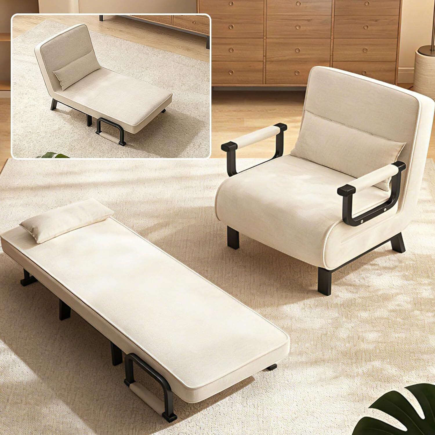 ソファ・ソファベッド・リクライニングチェアの3通りの使い方が可能なマルチ機能アイテム。コンパクトな1人掛け設計で日常使いに最適ながら、様々なシーンに対応する高い機能性を備えています。