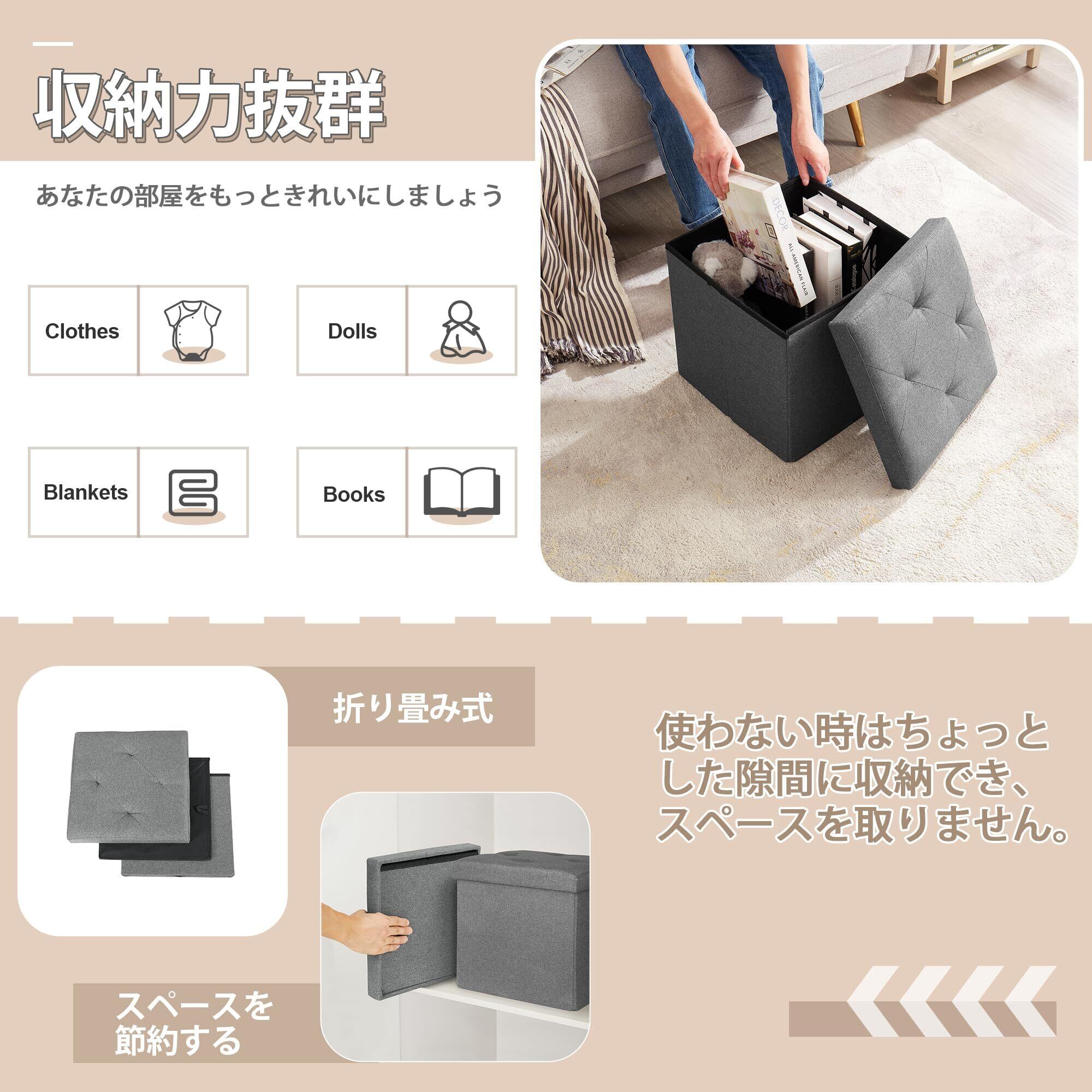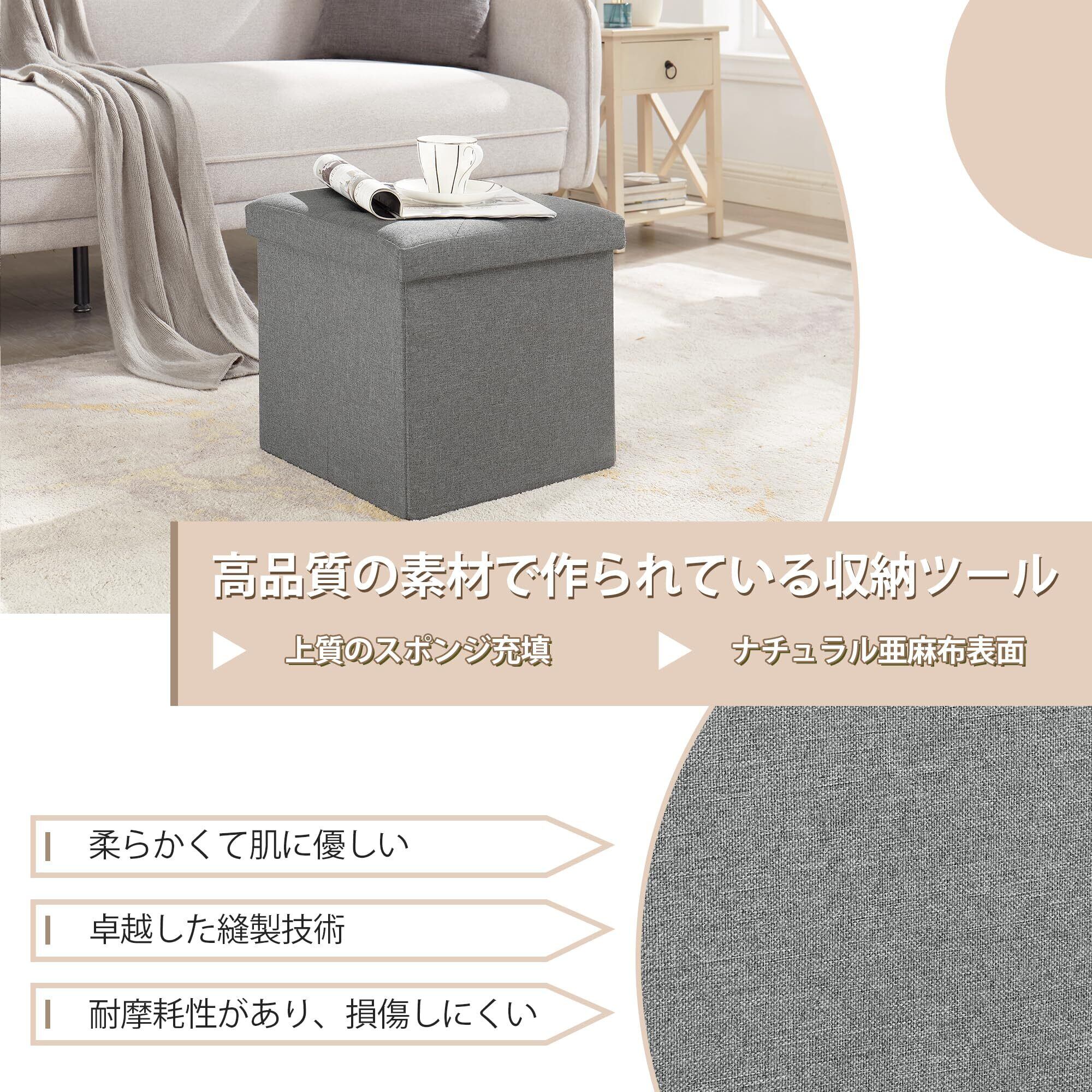 【優れた素材・お手入れ簡単】この収納スツールの表面は亜麻布で、丈夫で耐摩耗性があり、傷つきにくい;内蔵ボードはMDF高密度ボードで、軽量でありながら強い安定性があり、最大耐荷重は30KGとなります。お手入れの際はタオルで軽く拭くだけでOKです。