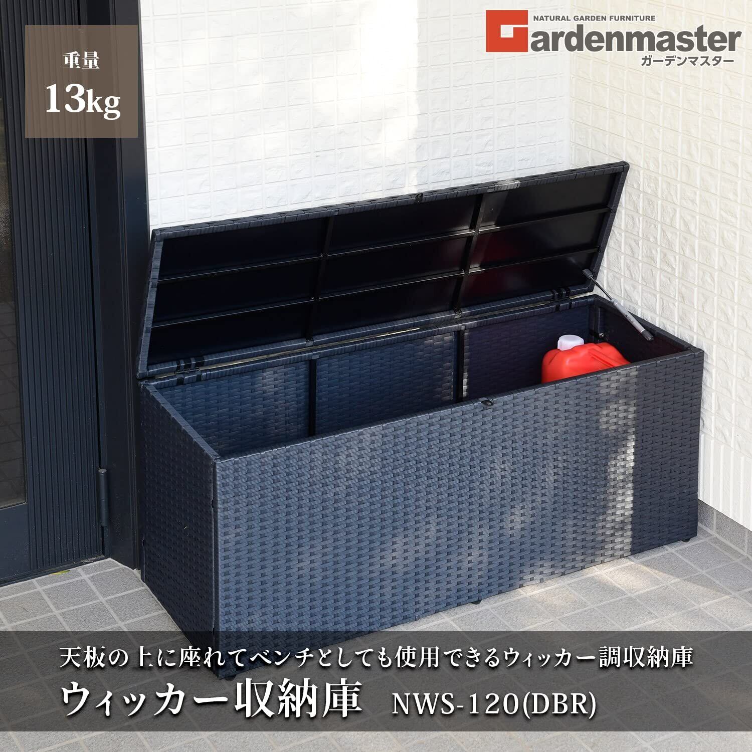 ガーデンマスター(Gardenmaster) ウィッカー 収納庫 幅120×奥行39×高さ52cm (幅120cmタイプ) 物置 収納ベンチ 玄関 軒先 お庭 ベランダ テラス バルコニー ダークブラウン NWS-120(DBR)