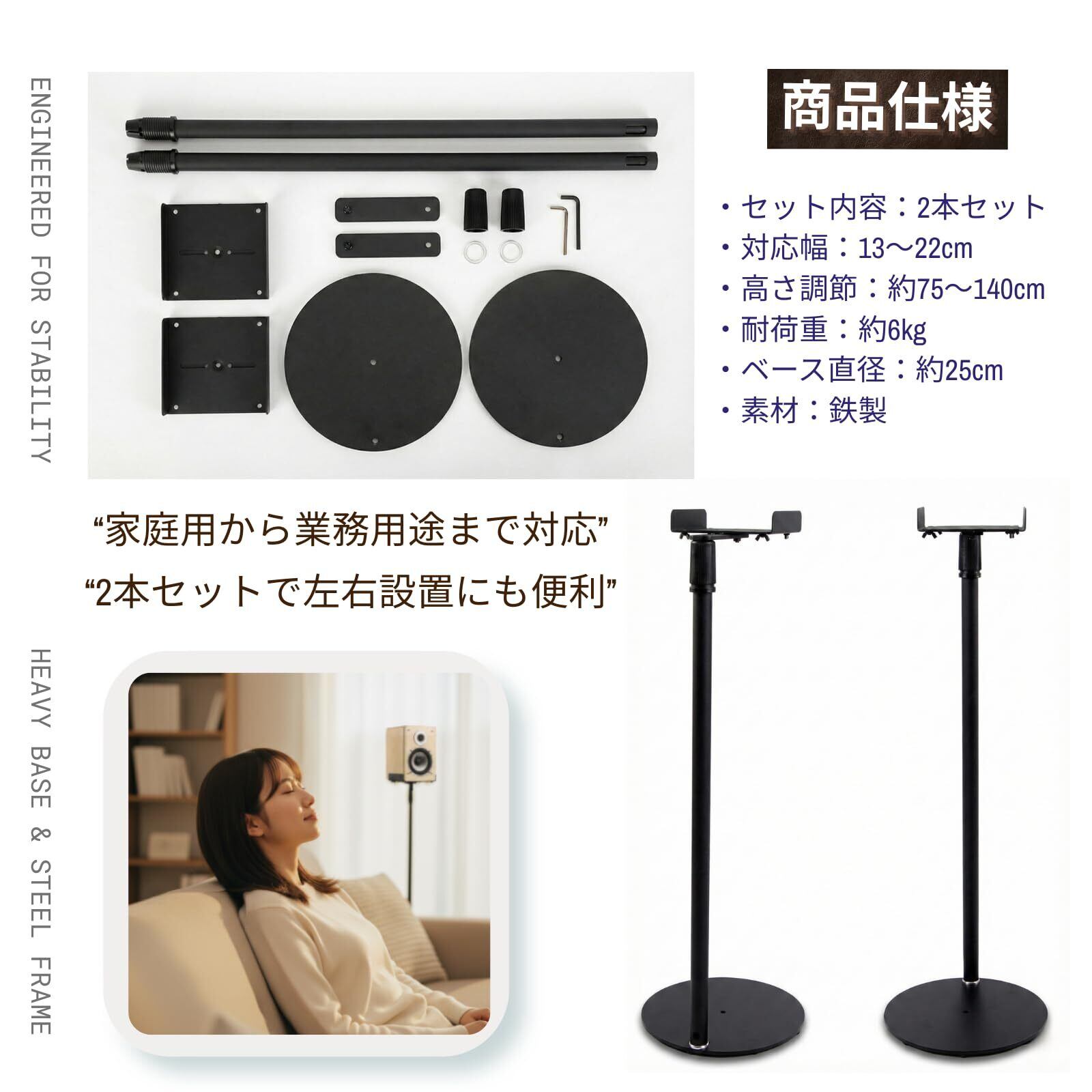 【リスニング環境に合わせて高さ調節】 高さは約75cmから140cmまで調節可能。耳の高さに合わせてスピーカーを配置でき、映画鑑賞や音楽再生時の音の広がりを引き出します。家庭用からスタジオ、会議室まで幅広いシーンで活躍します。