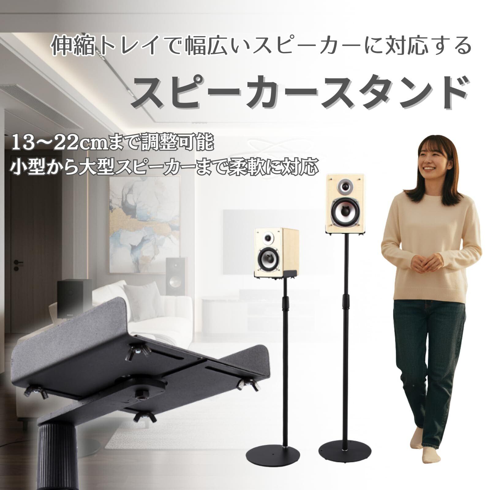 【自在に広がる設置自由度】 内田生活寸法本舗 フロアスピーカースタンド スピーカー台 高さ調整 拡張トレイ 丸型ベースリビングからホームシアターまで対応 2台1セット