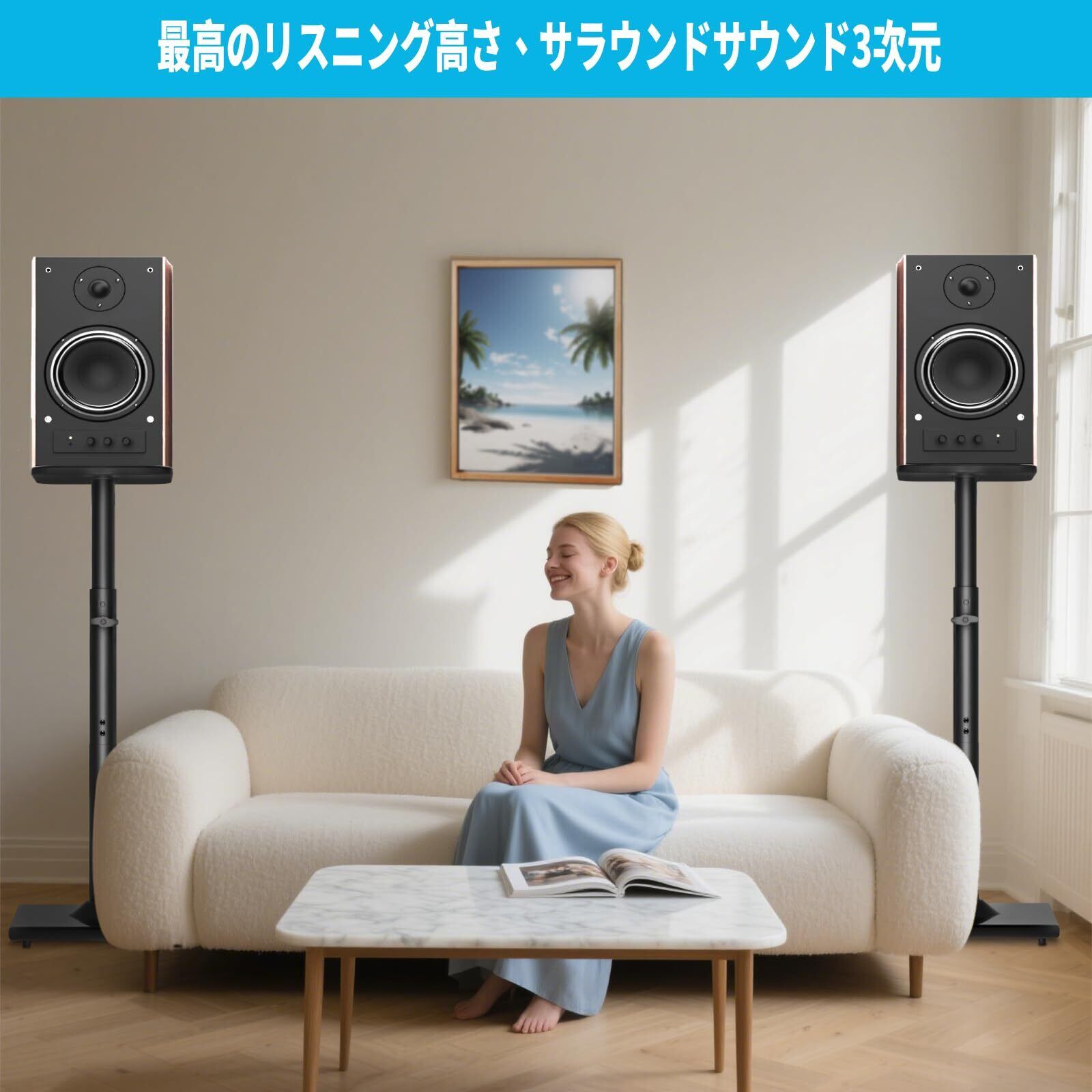 【多機能互換性】フロアスタンディングスピーカースタンドは、さまざまなタイプの小型サテライトスピーカーやブックシェルフスピーカーに適しています。スピーカースタンドは均等なサウンド共振を促進し、映画鑑賞や音楽鑑賞時に均一で充満した没入型のサウンド体験を提供します。
