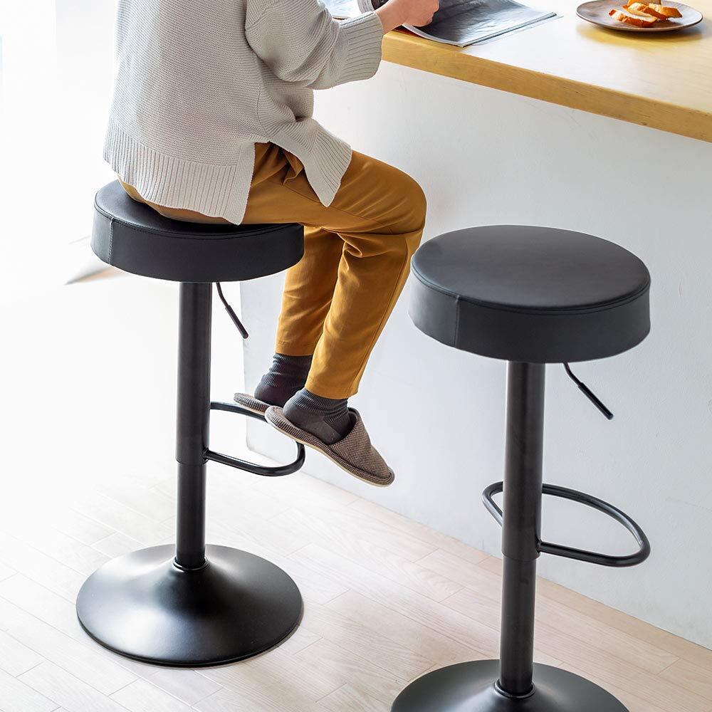 【特価セール】イーサプライ カウンターチェア ハイスツール 丸椅子 360度回転 高さ調節 62~84cm 足置き PUレザー クッション ブラック EEX-CH75