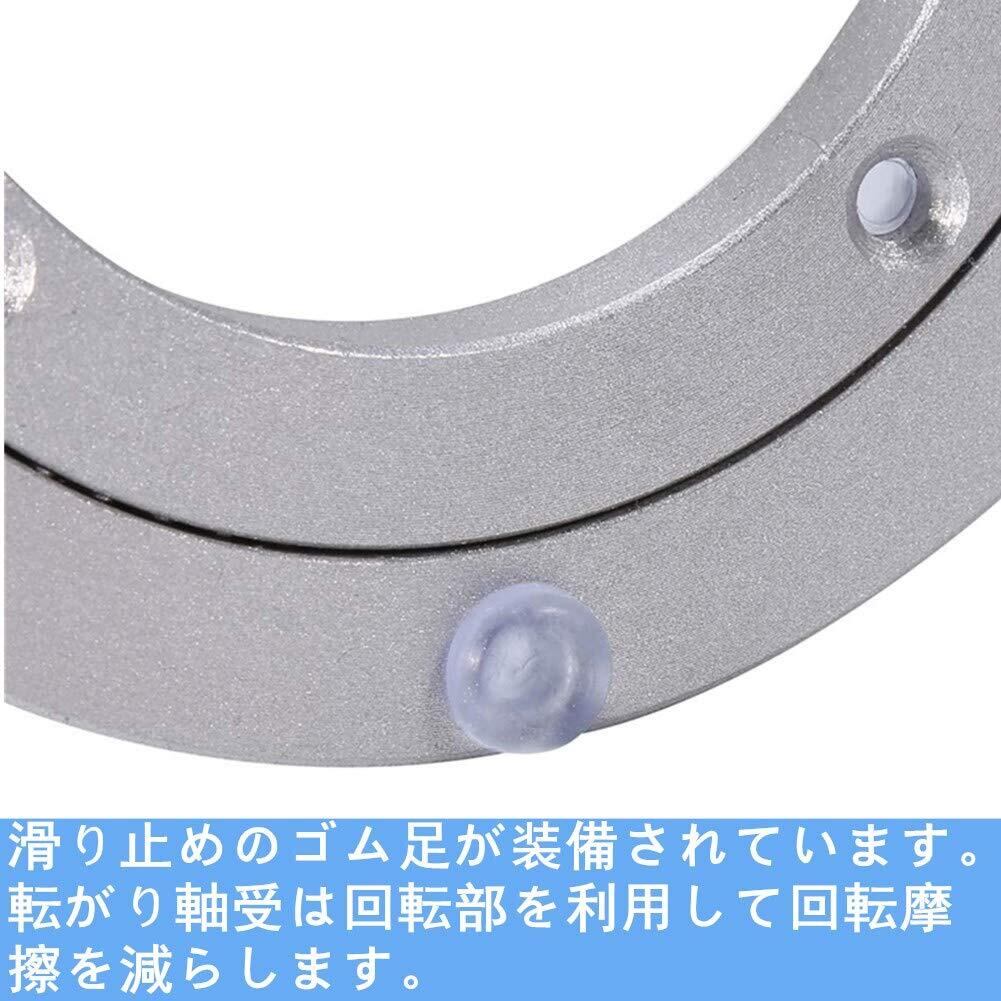 【商品仕様】素材: アルミニウム合金;製品サイズ:4 インチ (内径: 7cm /2.76 インチ、外径: 12cm /4.72 インチ、高さ: 8.5MM /0.33 インチ);パッケージ重量: 約 180g~470g;パッケージに含まれるもの:テーブルベアリング x 1