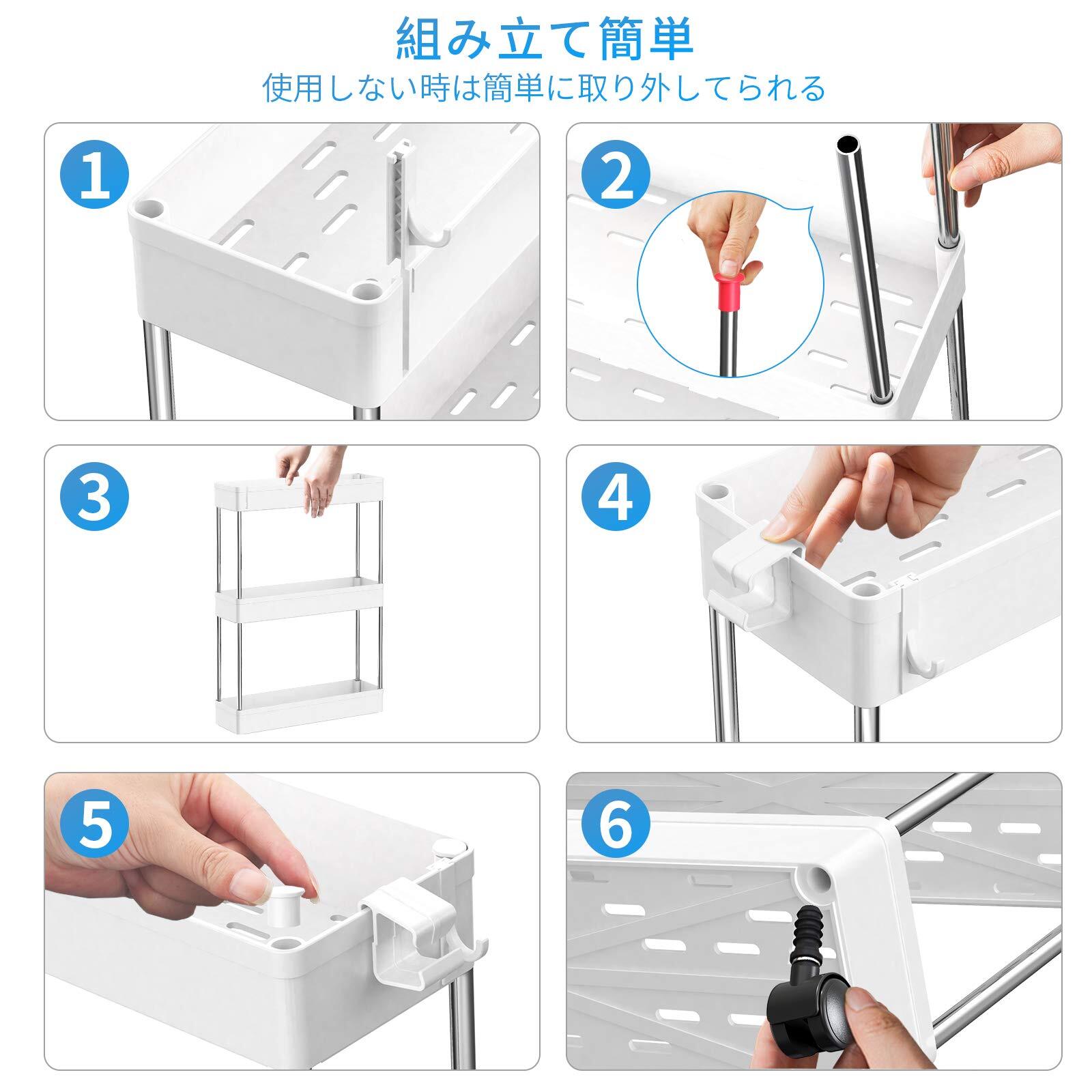 【組み立て簡単】このキッチンワゴンは組み立て簡単、女性一人でも組み立てられます。説明書に組み立て図解もあります。段数を自由に決めて、一段、二段、三段でも使えます。 説明書に組み立て図解もあります。