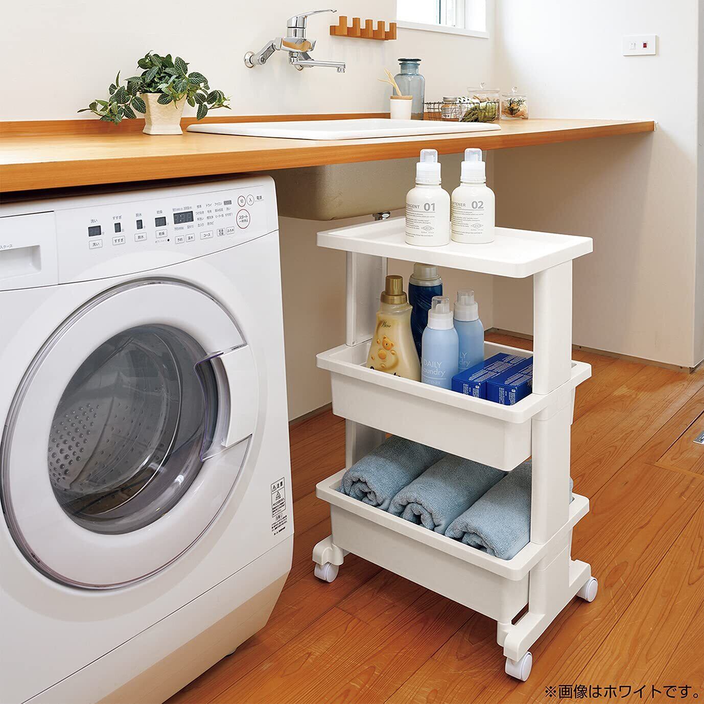リビング・キッチン・ランドリー・子供部屋・寝室など様々な場所で活躍するキャスター付きワゴン。工具不要の簡単組立式なので、女性でも簡単に組み立てできます。 カラーバリエーション:ホワイト・ブルー・ブラック・ライトグレー・ピンクグレーライトグレー・ピンクグレーの5色 天板タイプ(画像はテーブルタイプ):テーブルタイプ・ボックスタイプ(ホワイトのみ) サイズ:通常サイズとデスク下に入る小さいミニサイズの2サイズ