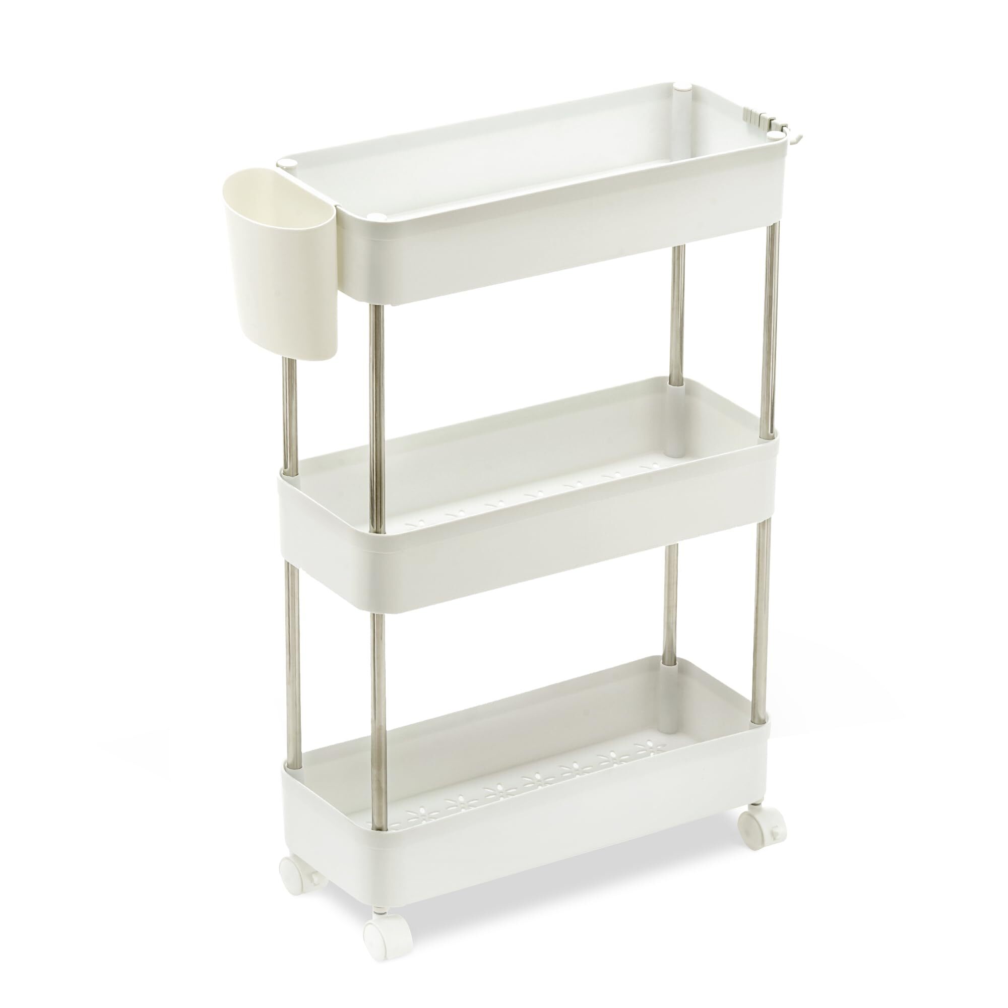 【特価商品】VECELO キッチンワゴン 3段 ホワイト 幅15×奥行40×高さ61.5cm 重量約0.9kg スリムラック キャスター付き おしゃれ 隙間収納
