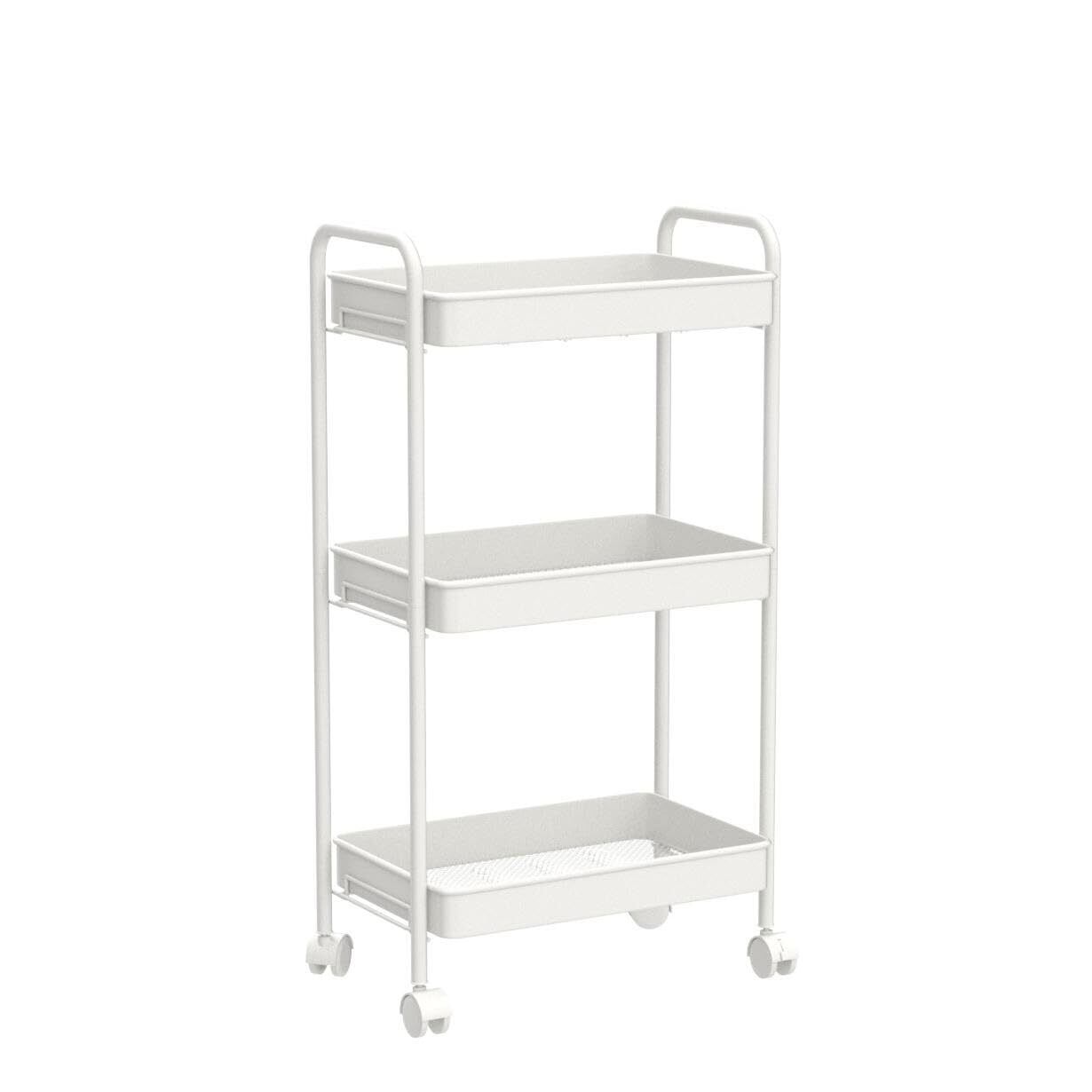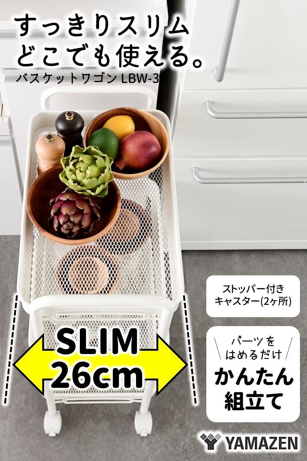 山善(YAMAZEN) キッチンワゴン キャスター付き 3段 幅43.5×奥行26×高さ74.5cm ワゴン 隙間収納 組立かんたん マットホワイト LBW-3(MWH)