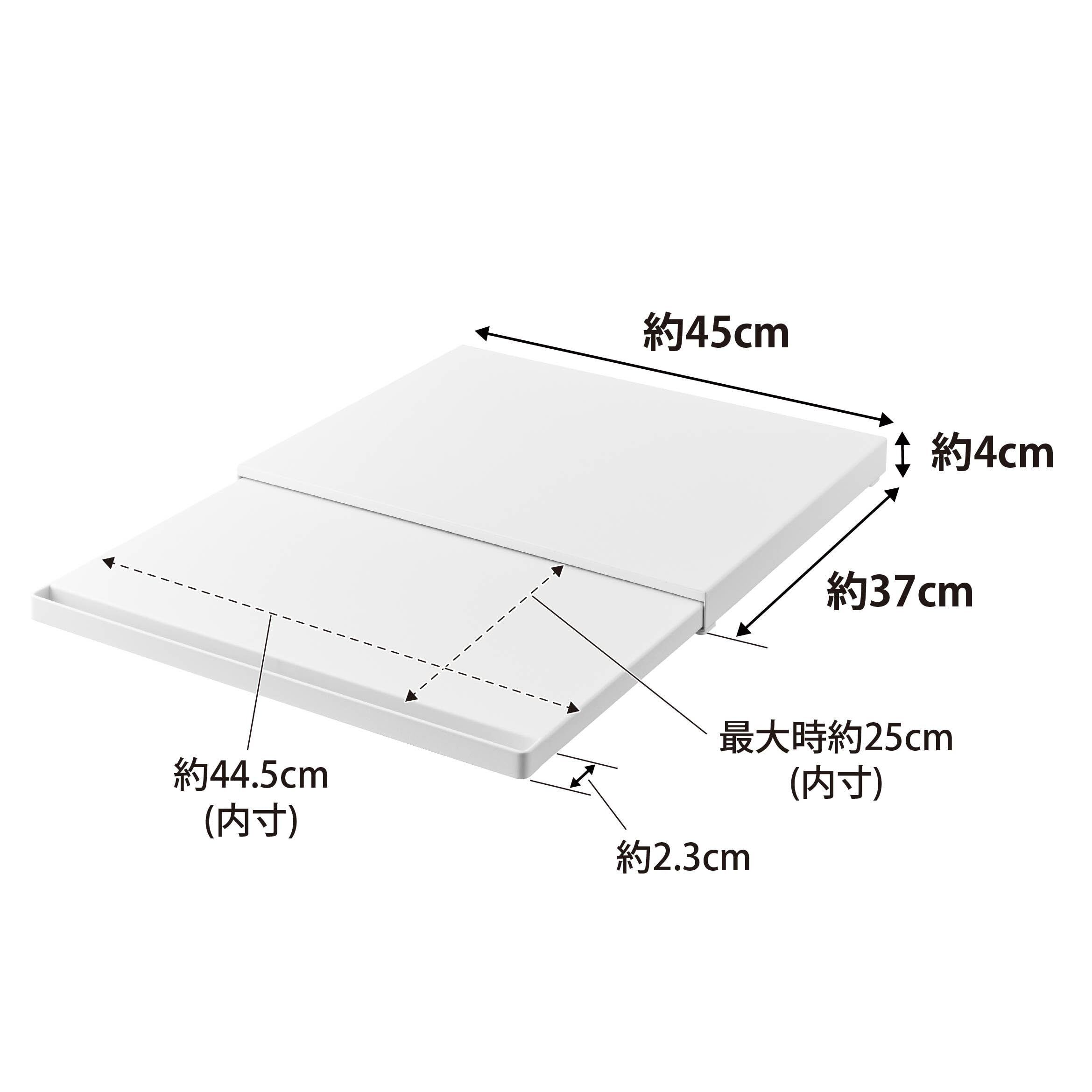 家電下に便利な作業スペースができるキッチンスライドテーブル 必要な時だけ引き出せるスライドテーブルで家事効率アップ! スライドテーブルは調理スペースとして使用できます。 お料理の一時置きにも便利。 スライドテーブルは最大約25cm引き出せます。 ■サイズ:約幅/45cm x 奥行き/37cm x 高さ/4cm