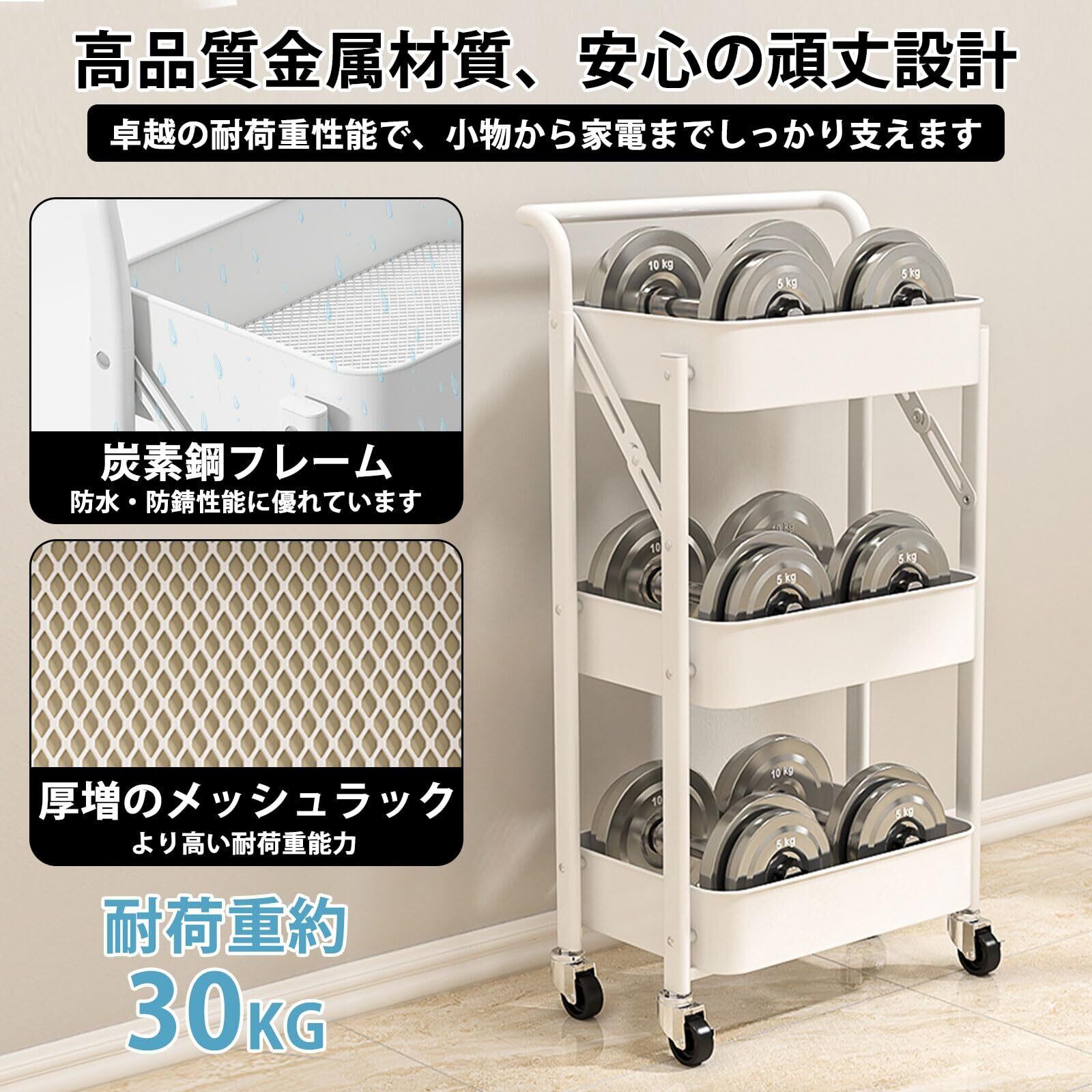 [SupTrip] キッチンワゴン 組立不要 折り畳み式 【オール金属構造 】 3段 キャスター付き 取っ手付き キッチンラック スチールラック 幅45×奥行30×高さ85cm 3段 調味料 棚 収納 防錆 隙間収納 収納カート 収納ラック キッチン リビング 浴室 ベッドルーム (ホワイト)