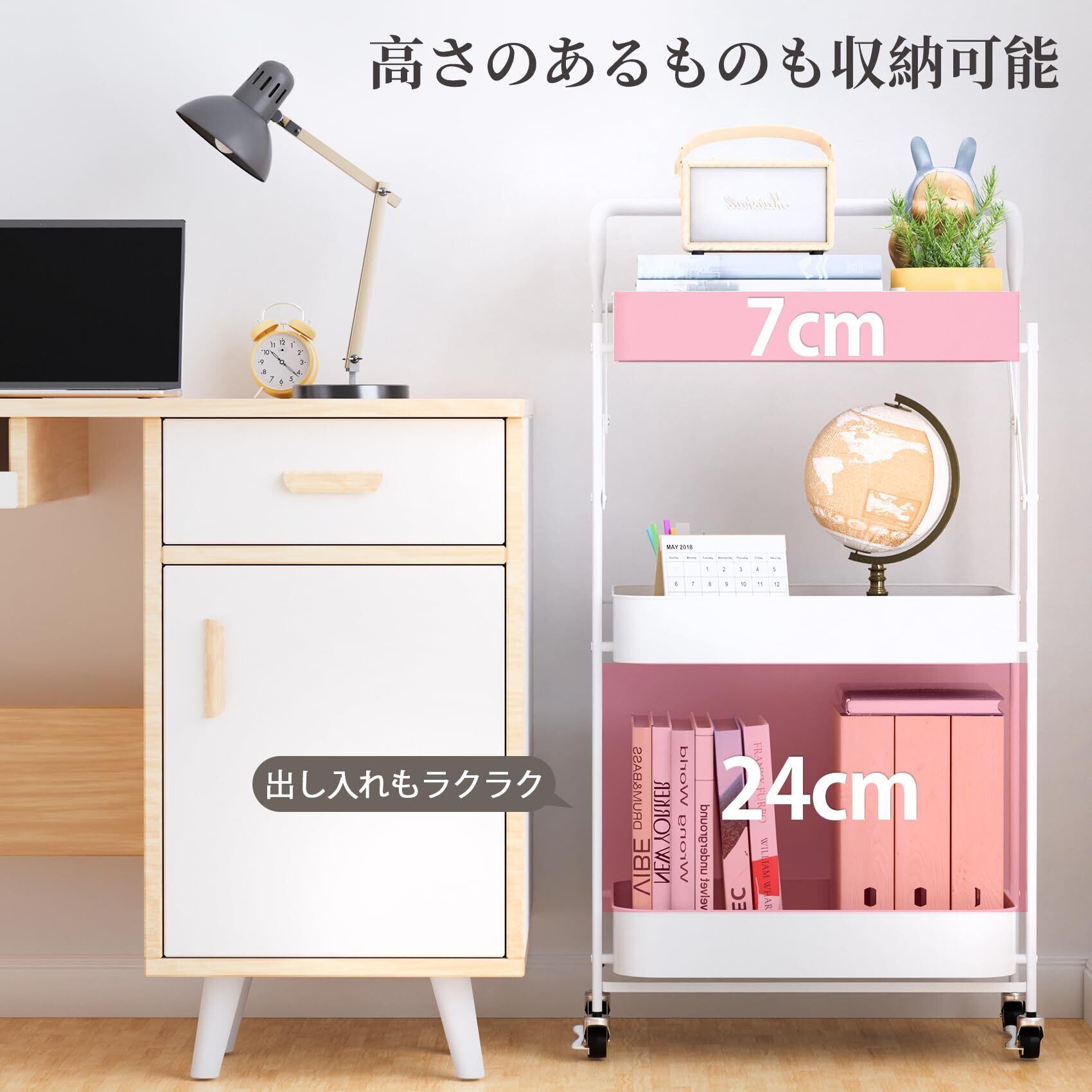 キッチンワゴン 組立不要 3段 折り畳み式 スチールラック 幅46×奥行29.5×高さ87cm バスケットトローリー バスケットラック ハンドル キッチンラック キャスター付き 3段 棚 隙間収納 収納ワゴン 収納カート 収納ラック 移動式