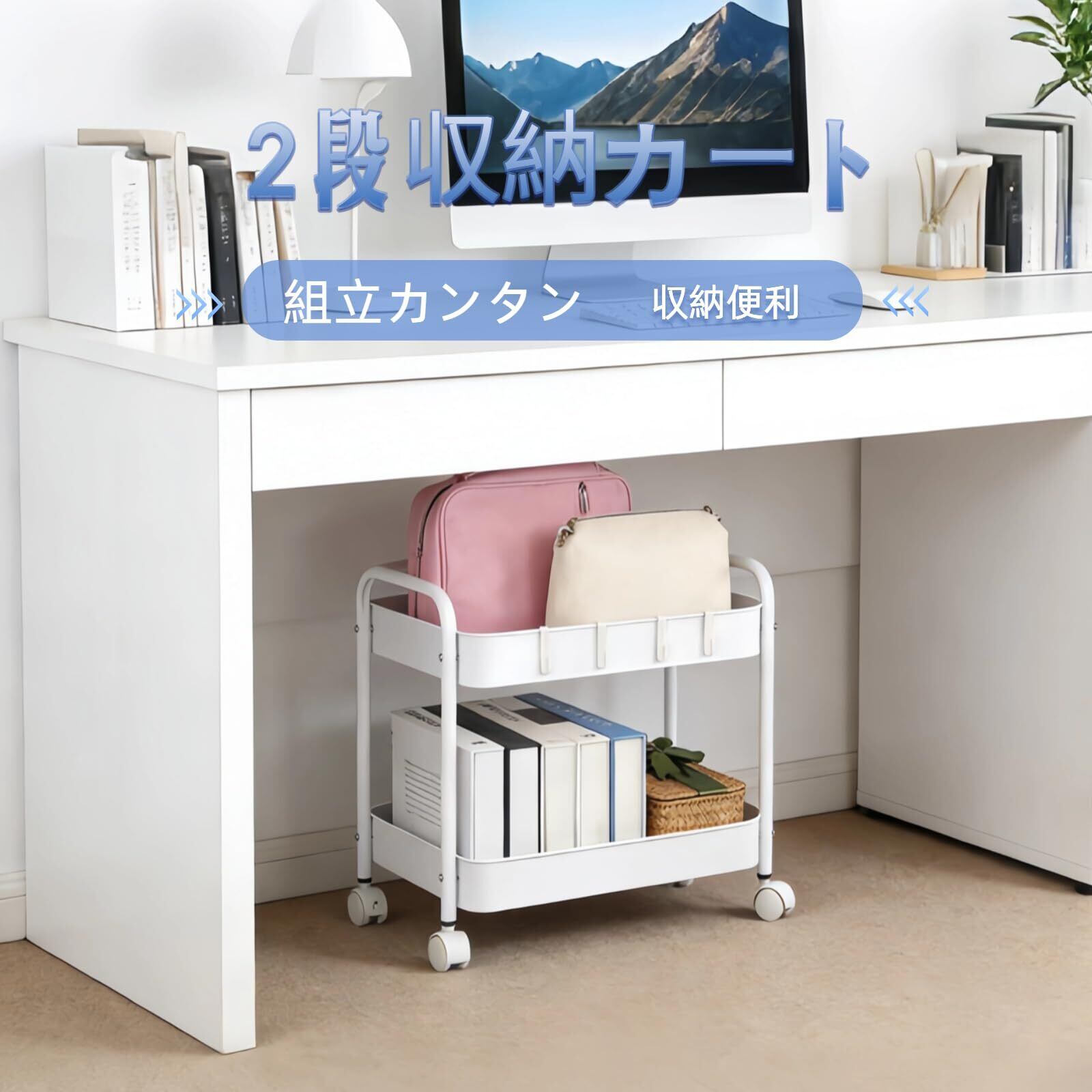 【大容量 デスクした収納】また、通気性の良い底板には、地面にメッシュが付いているため、湿気の多い環境でも簡単に清掃できます。また、収納カートのバスケットは全金属製で防水・防食性を確保しながらも、可愛くてスタイリッシュな見た目を醸し出しています