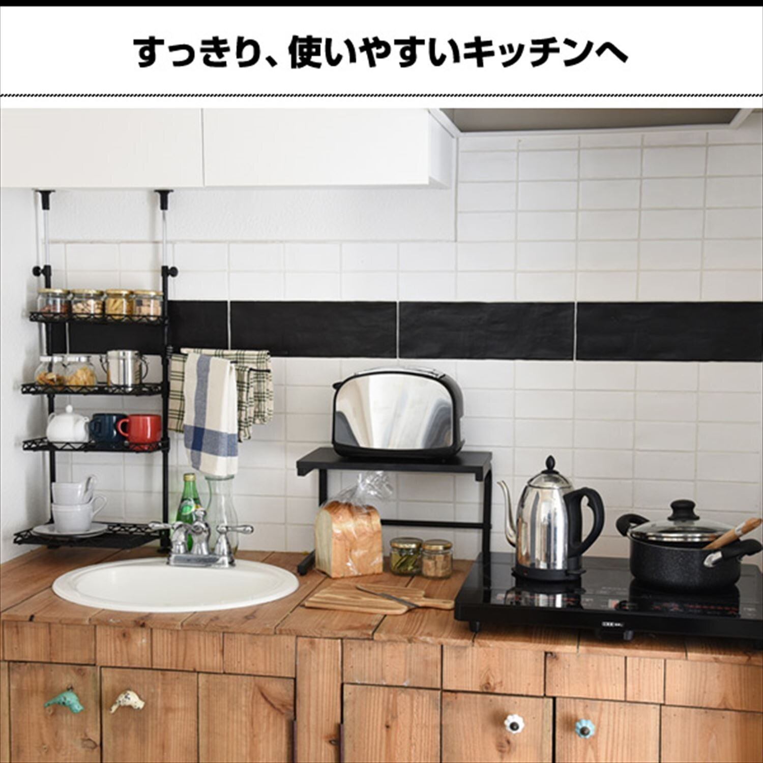 山善(YAMAZEN) レンジ上ラック 幅40×奥行22×高さ25cm 熱・水に強い アジャスター付き 組立品 ブラック RKS-4022(BK)
