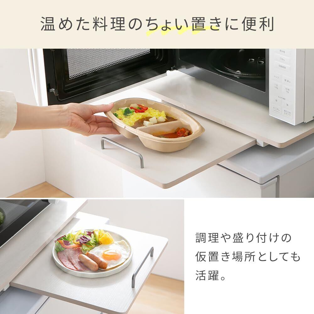 料理の一時置きができるスライド棚は、レンジから熱いお皿取り出すときにも便利。