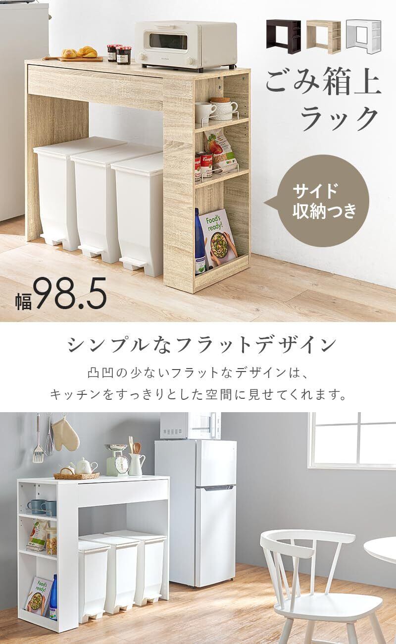 萩原 レンジ台 キッチンラック ゴミ箱上 ラック 引き出し付き 幅 98.5 奥行 42 高さ90.5 天板 耐荷重 20kg ホワイト 組立品 VKR-7149-WH