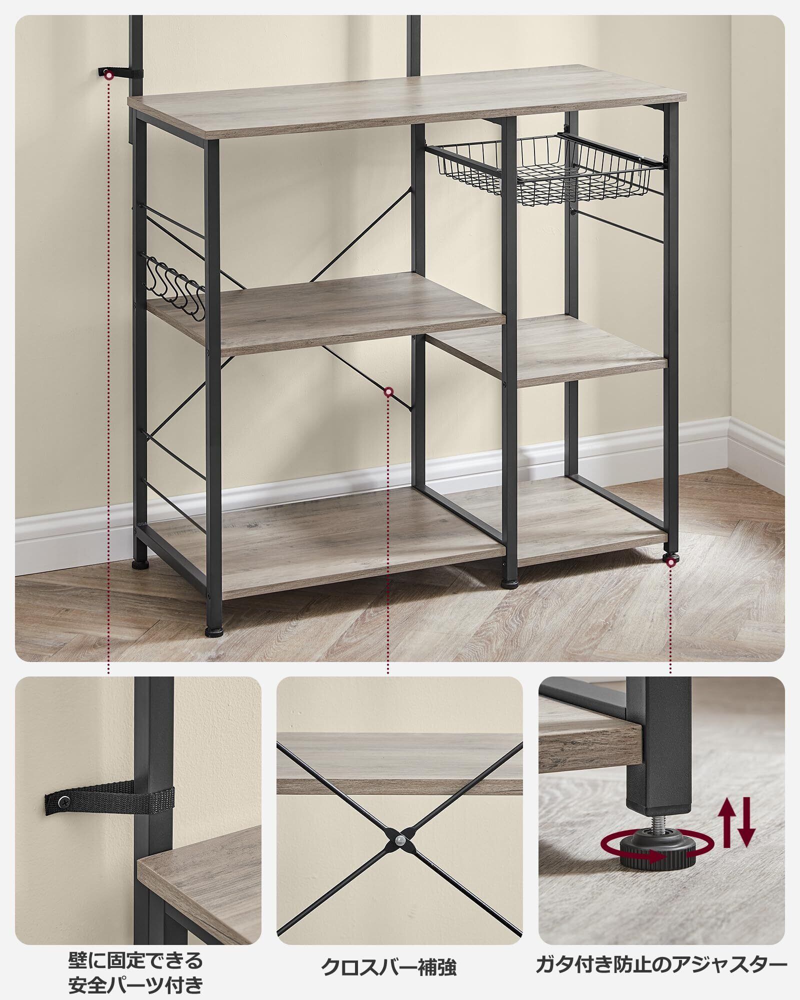 【特価セール】VASAGLEレンジ台 キッチンラック幅90 レンジラックレンジボード 大型レンジ対応 キッチンワゴン 食器棚 キッチン収納 6個S字ラックを付き 高さ132cm アイボリー KKS035B02