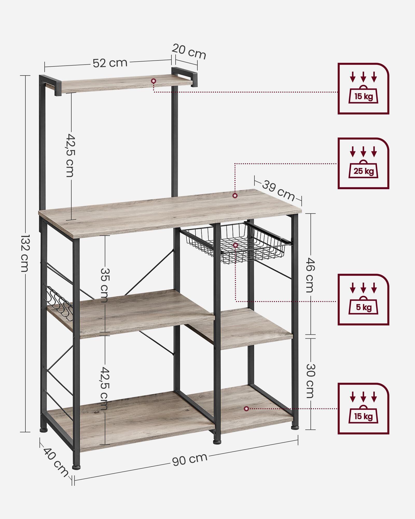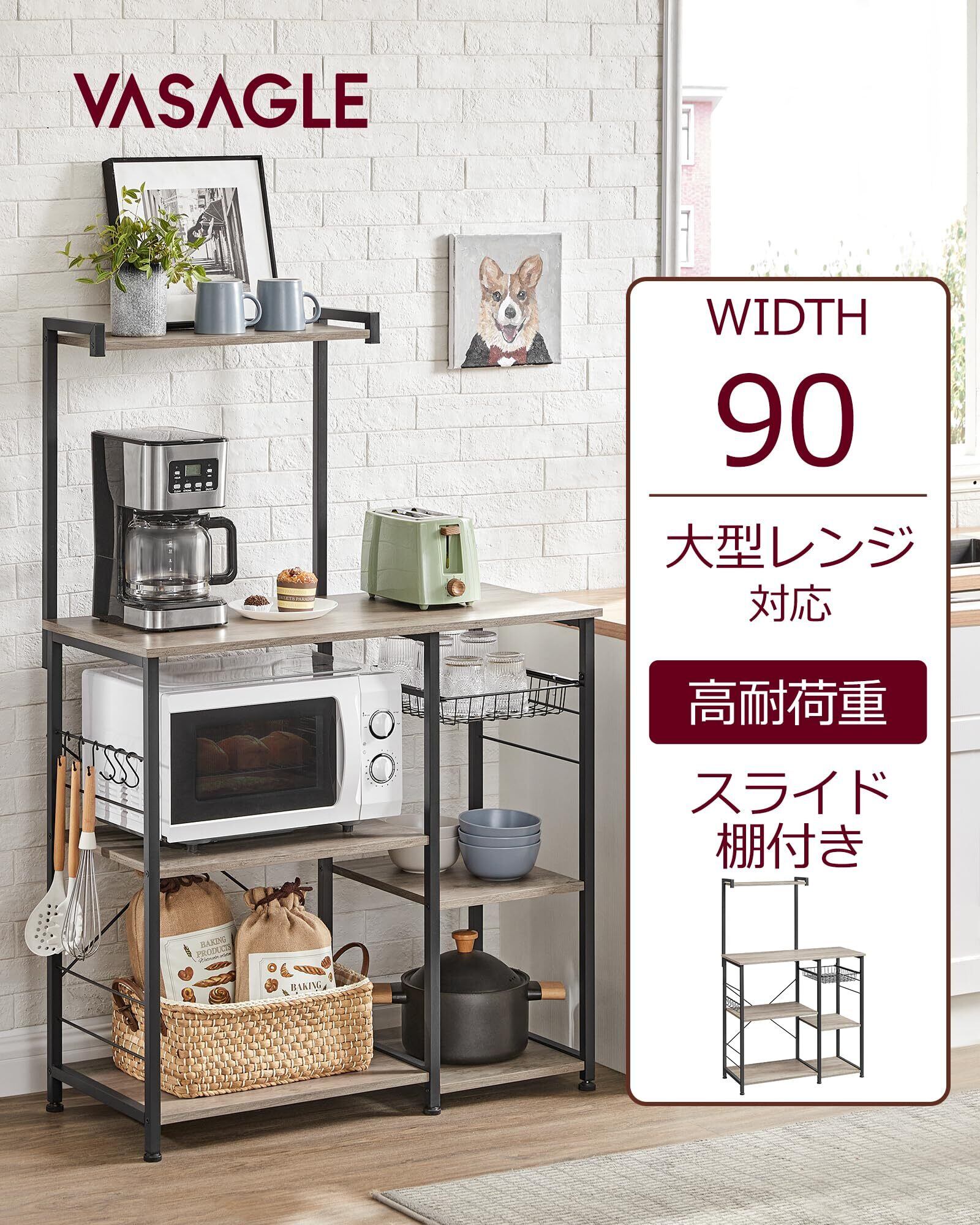 VASAGLEレンジ台 キッチンラック幅90 レンジラックレンジボード 大型レンジ対応 キッチンワゴン 食器棚 キッチン収納 6個S字ラックを付き 高さ132cm アイボリー KKS035B02
