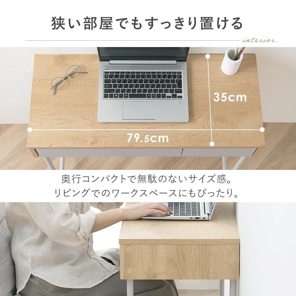 アイリスオーヤマ リビングデスク パソコンデスク ドレッサー ナチュラル/グレー 幅約79.5×奥行約35.0×高さ約71.1 耐荷重:20kg(天板)2kg(各引き出し) B5サイズが収納できる大小二つの引き出し付き アジャスター付きスチール脚 無駄のないサイズ感 高さ調節可能なアジャスター 必要工具:プラスドライバー 一人暮らし おしゃれ LaLassicシリーズ LLVD-795