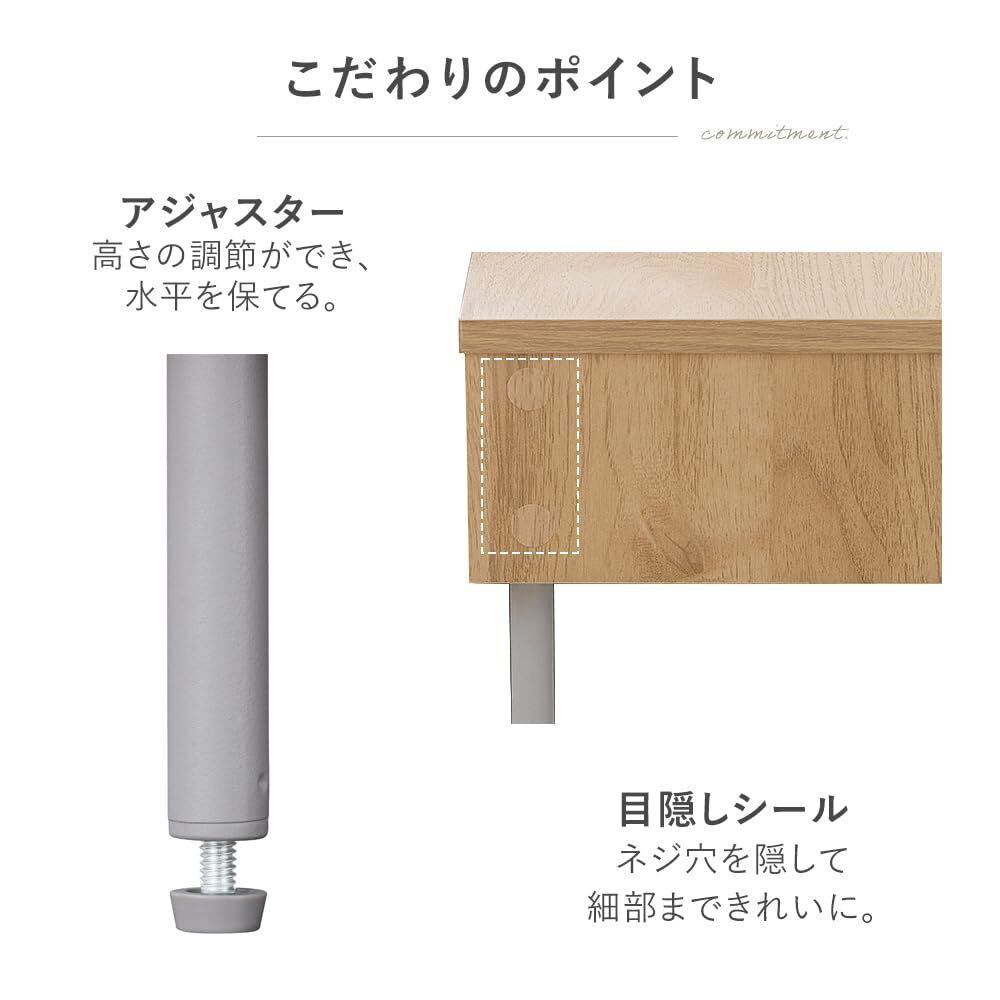 グレーの引き出しがお部屋のアクセントに。インテリアに馴染む綺麗な木目調があたたかな雰囲気を演出。スチール脚は丸くやさしい印象。