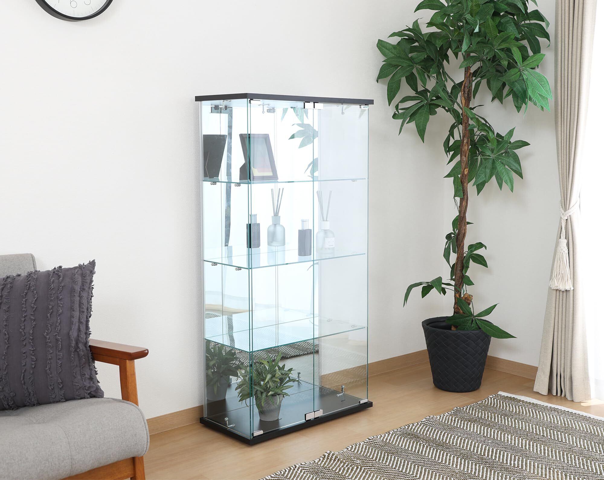 不二貿易 コレクションケース フィギュアケース 4段 幅60×奥行30×高さ119.5cm ブラック 強化ガラス 全面ガラス 組立商品 クリア ワイド BAAL 63936