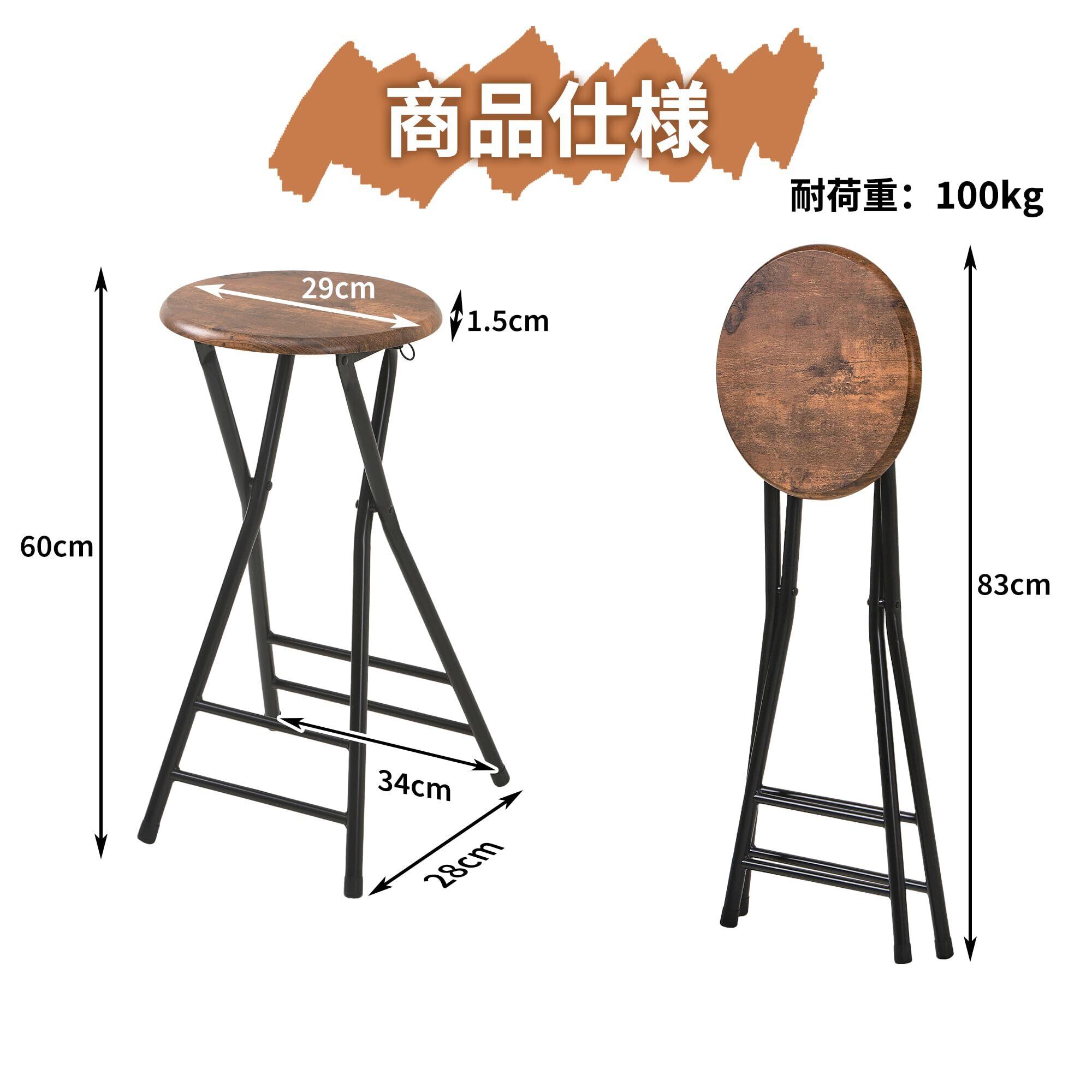 【数量限定】VECELO カウンターチェア 折り畳み椅子 スリム 軽量 持ち運び 完成品 組立不要 座面高60cm 耐荷重100kg ブラウン