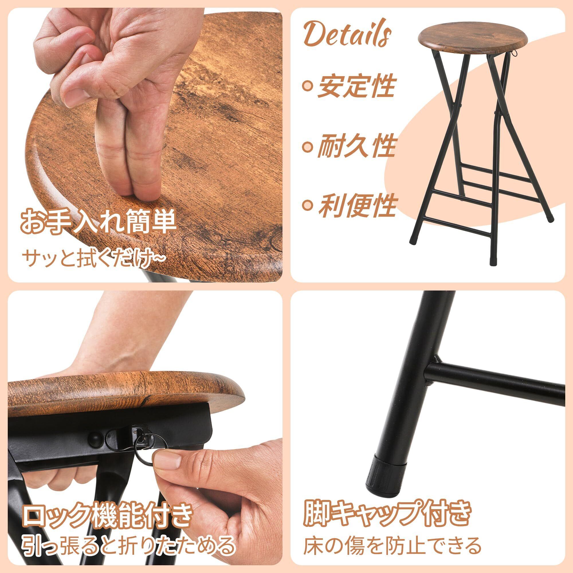VECELO カウンターチェア 折り畳み椅子 スリム 軽量 持ち運び 完成品 組立不要 座面高60cm 耐荷重100kg ブラウン