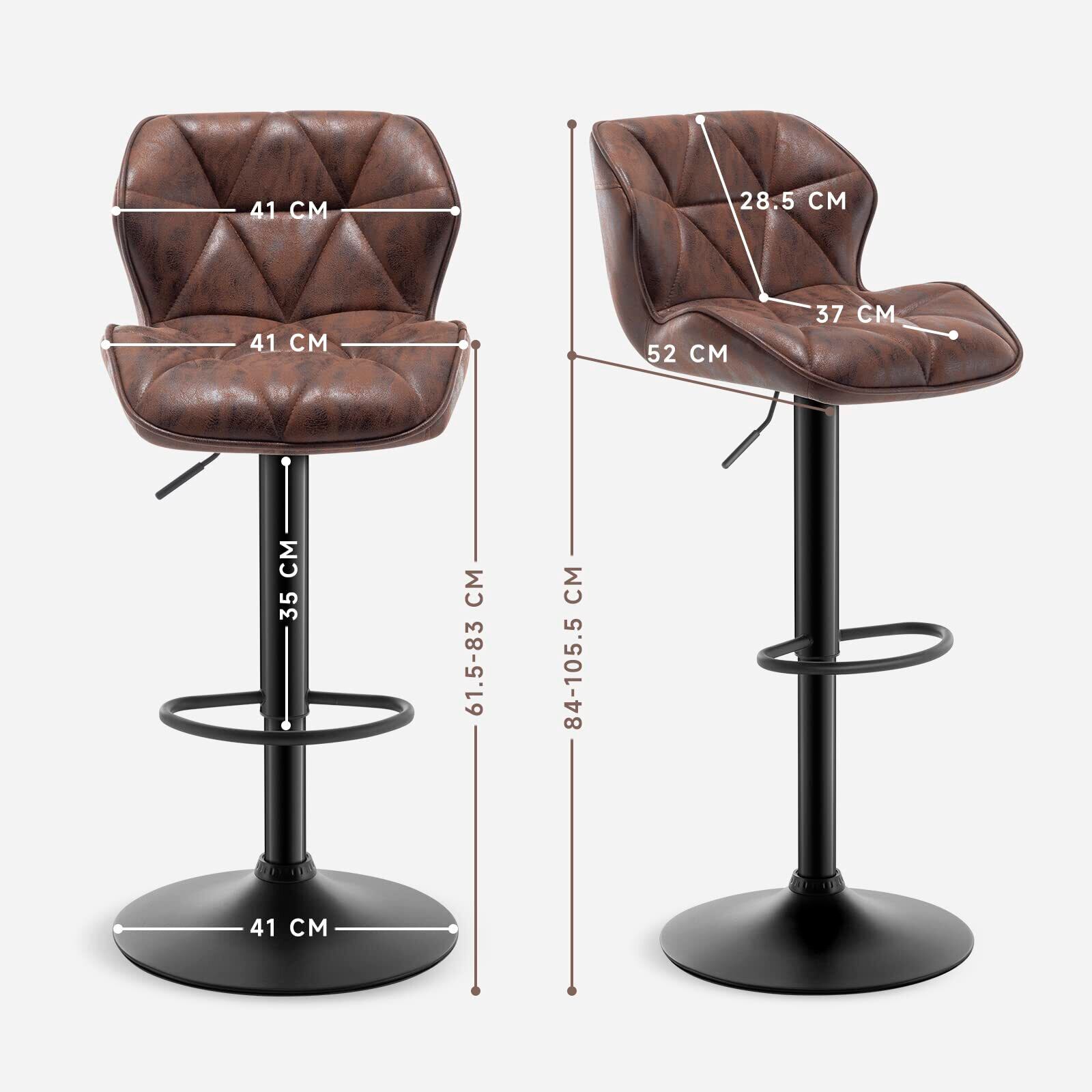 Danketuhlカウンターチェア 昇降式 バースツール 回転 ブラウン ビンテージのバーチェア 背もたれ付き 84-105.5cmアームレスモダンカウンタースツール 1脚