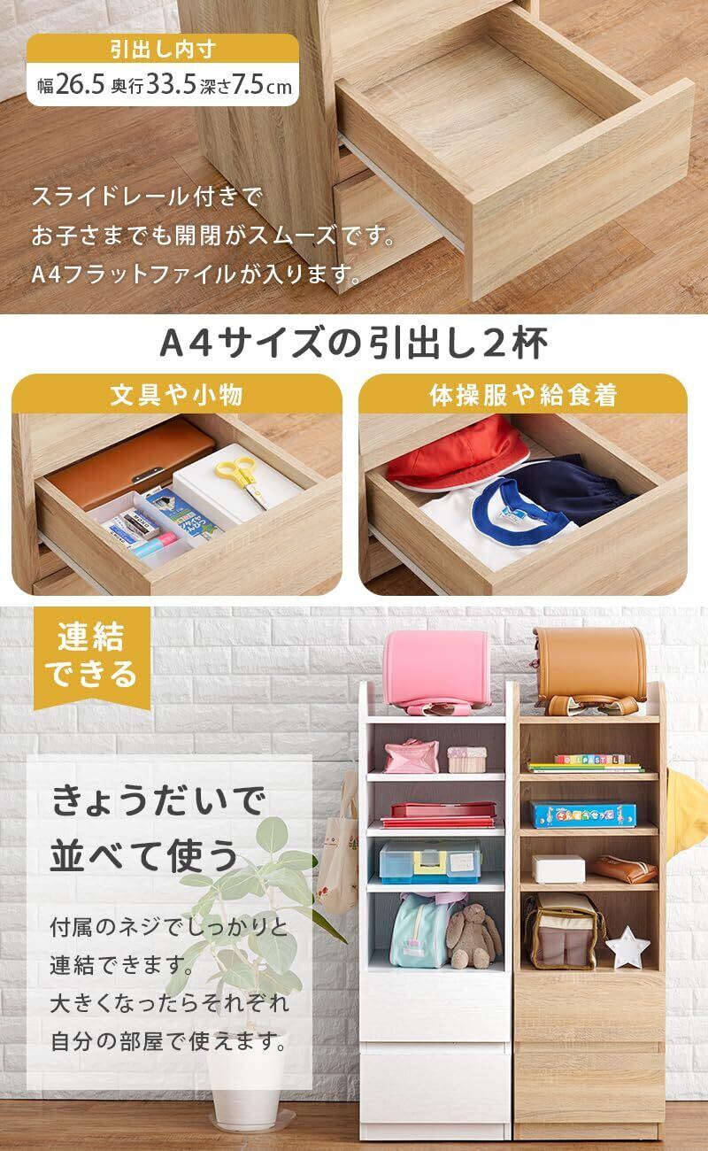 筆記用具や体操服など小物を収納できる2つの引出し、帽子や手提げ袋の一時置きにできるサイドフックでお片付け上手に!