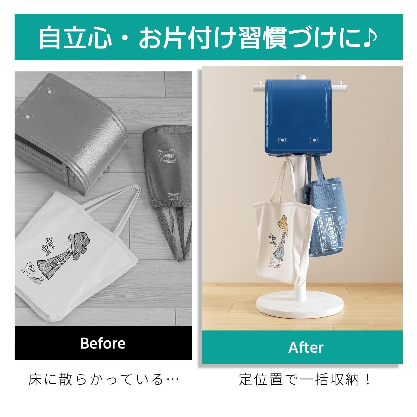 ランドセルスタンド 子供用 ランドセル収納 省スペース 大理石ベースで安定感 通学用品すっきり収納 小物整理 幅28×奥行28×高さ89cm 組立簡単 玄関・子供部屋に