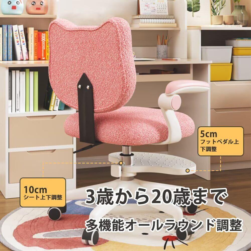 【特価セール】学習椅子 勉強椅子 学習チェア デスクチェア(書桌椅) 子供 小学生 中学生 高中生 かわいい猫の頭型背もたれ 姿勢矯正 人間工学 高さ調節(座面 40-50cm) 足置き付き(20-25cm 調節) SGS 認証防爆ガススプリング PU 静音キャスター 高反発スポンジ座面 アームレスト収納式 勉強机に適合