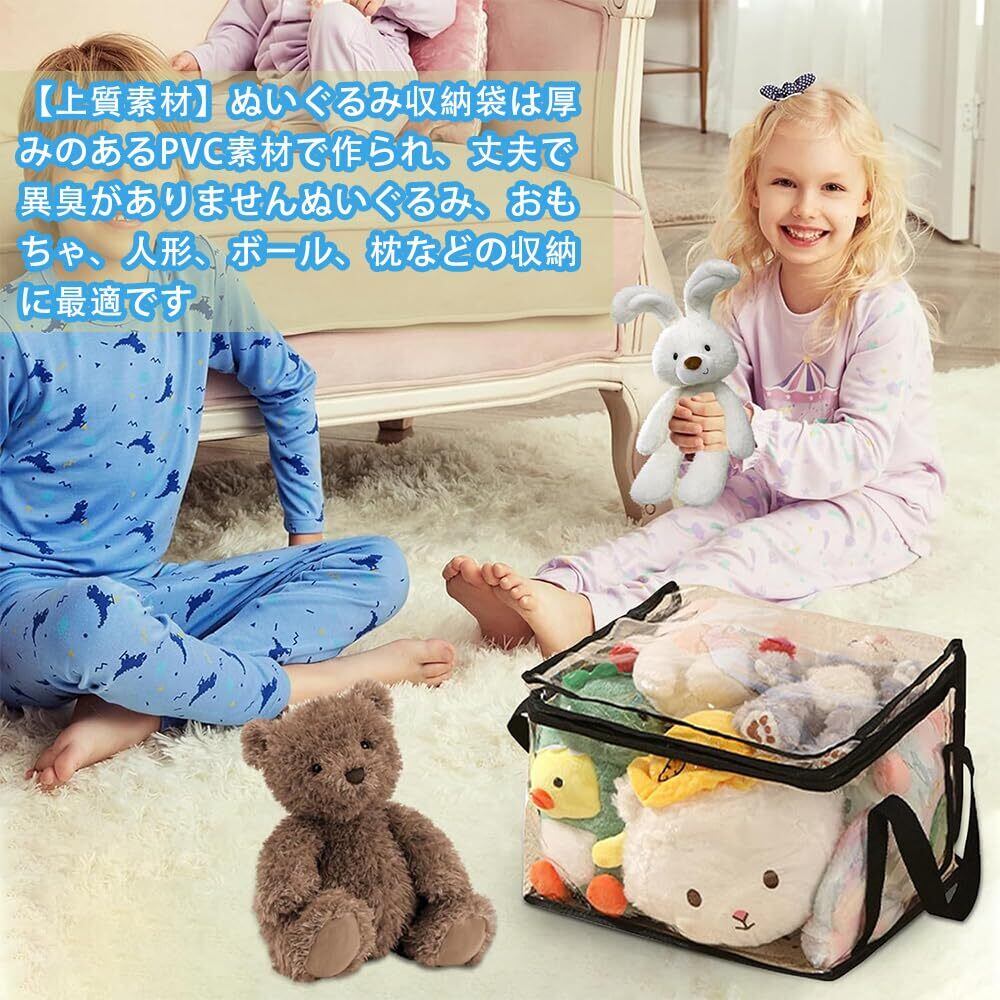 ぬいぐるみ収納袋 透明おもちゃ収納 持ち手付き 収納ケース 大容量 防水 防塵 防湿 折りたたみ 収納ボックス 衣類収納 雑貨収納 子供部屋収納 多機能 雑誌 書類 収納ポケット 整理整頓ファスナー付き (ホワイト)